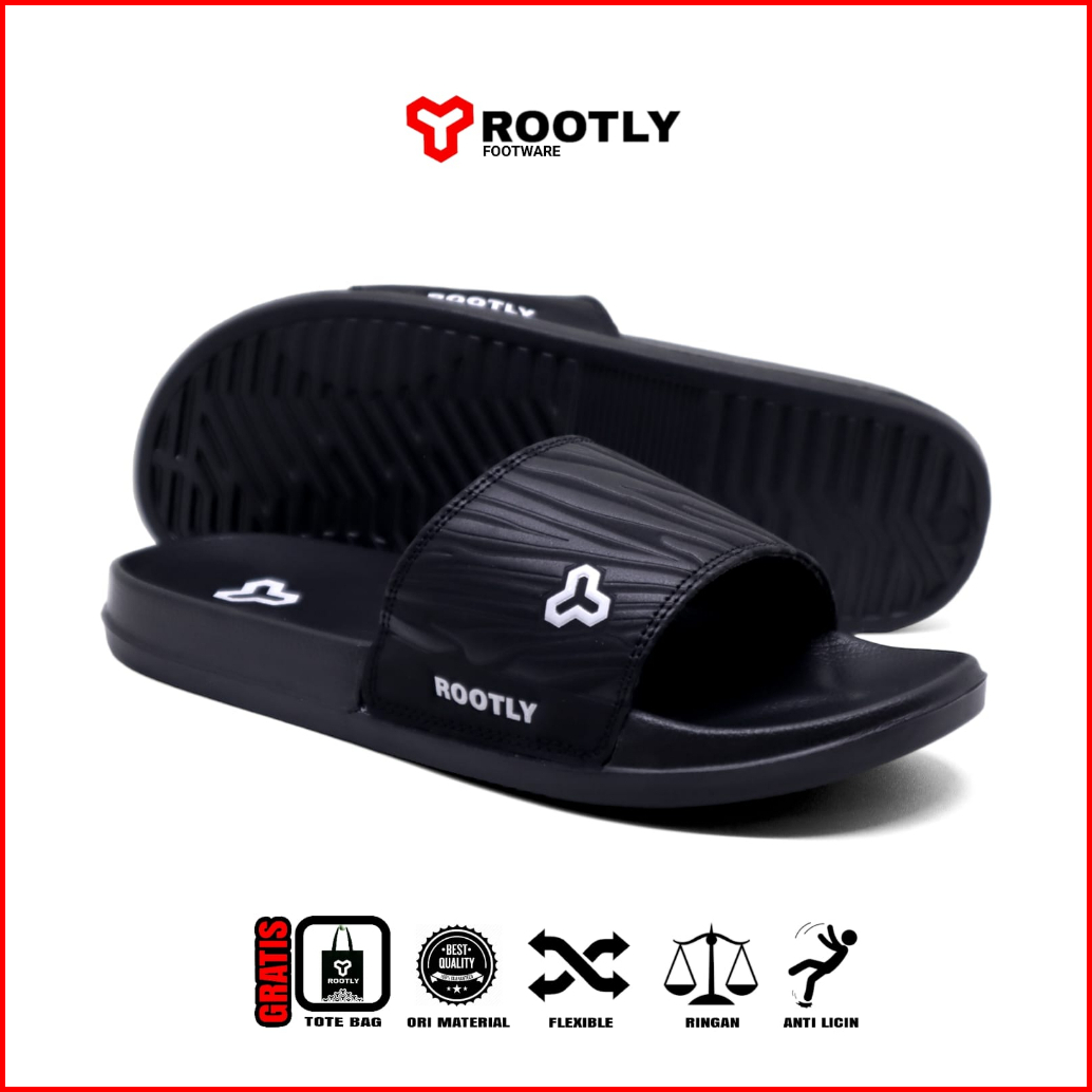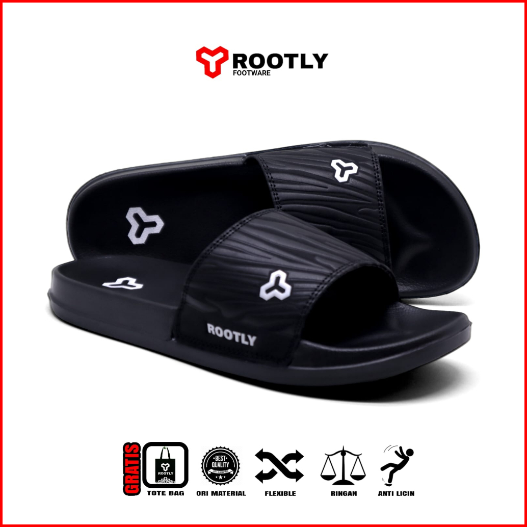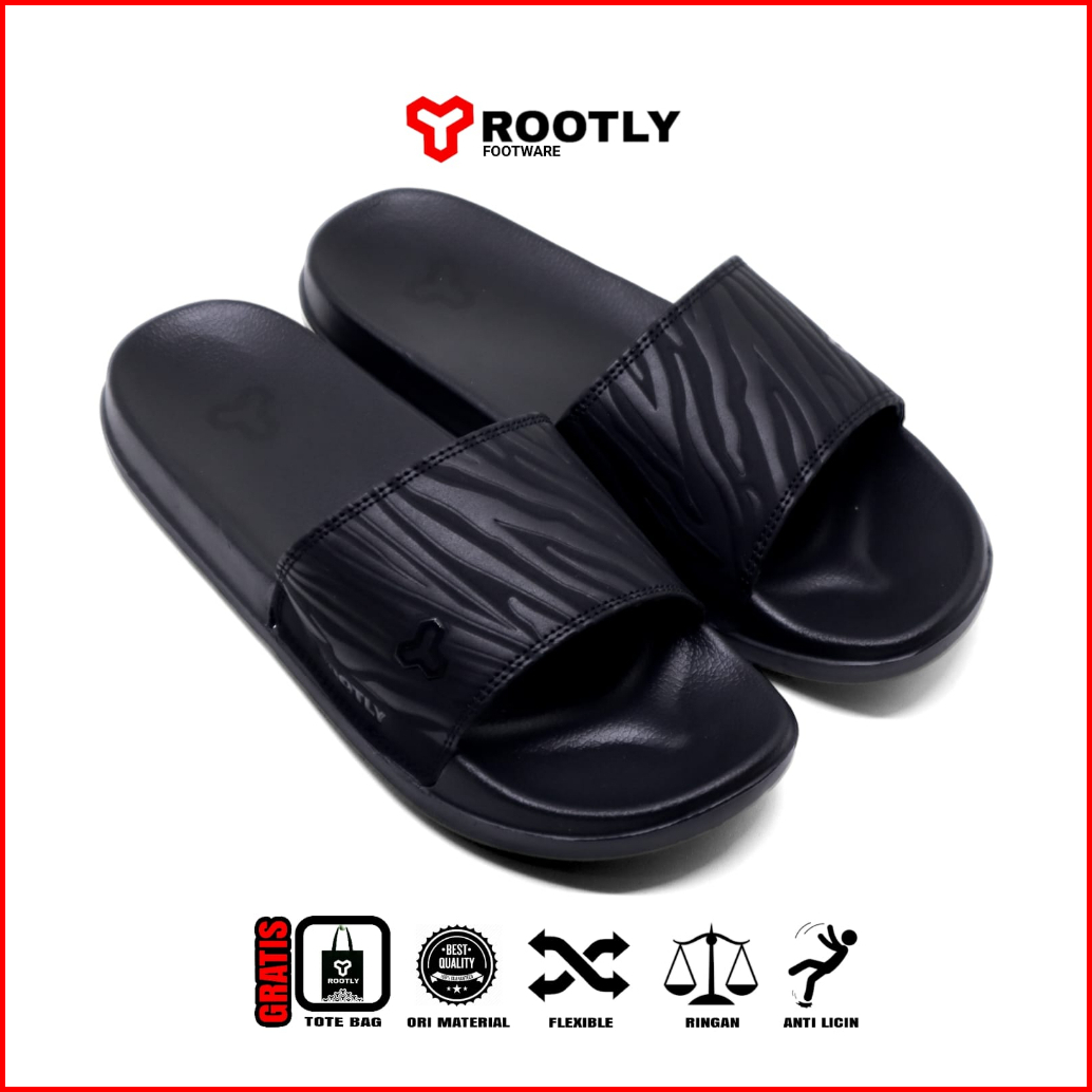 Rootly - Sandal Pria Slide On Motif Zebra Full Embos Timbul Kekinian