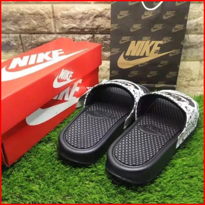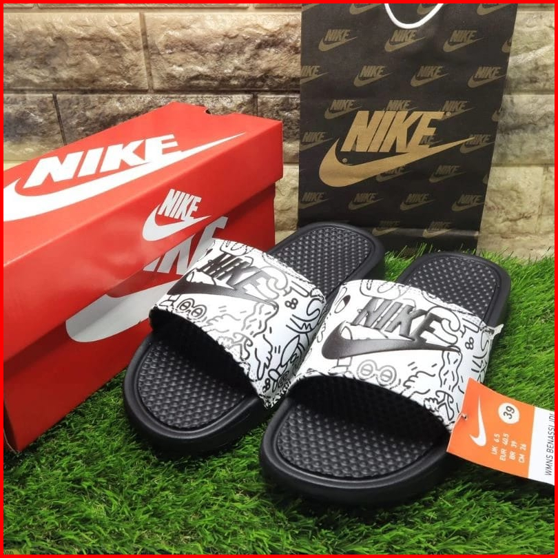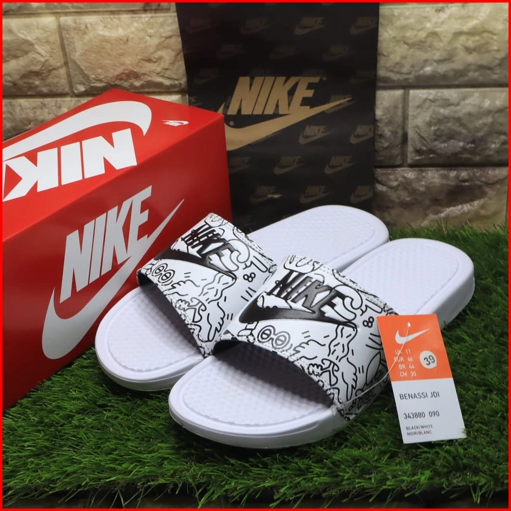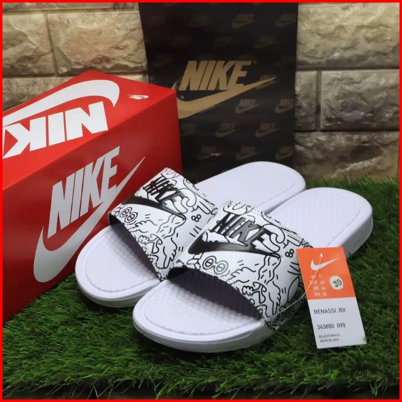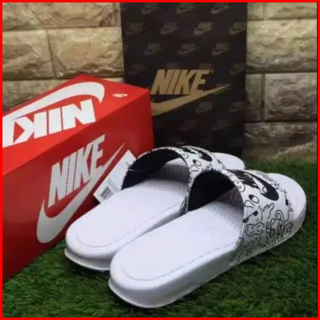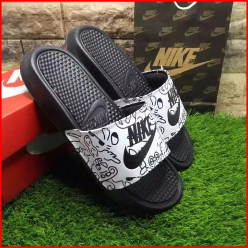 Sendal Pria Wanita Slip Sandals Slop Slide Hitam Grafiti Termurah Full Putih Grafiti