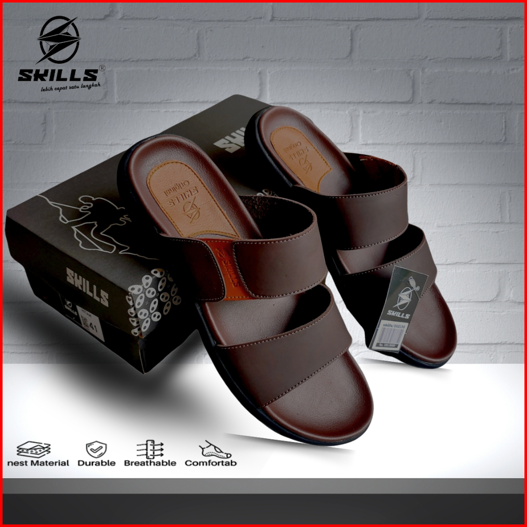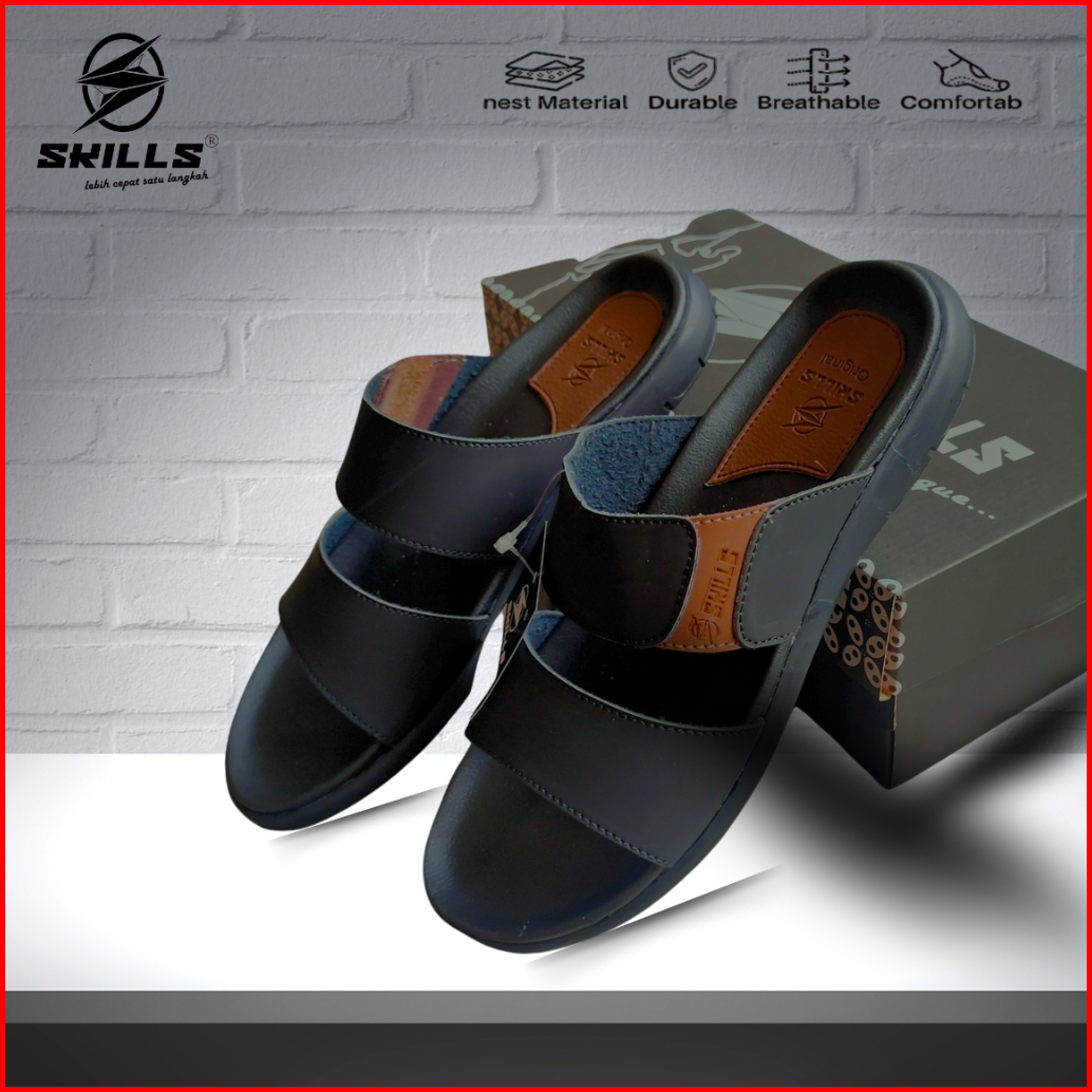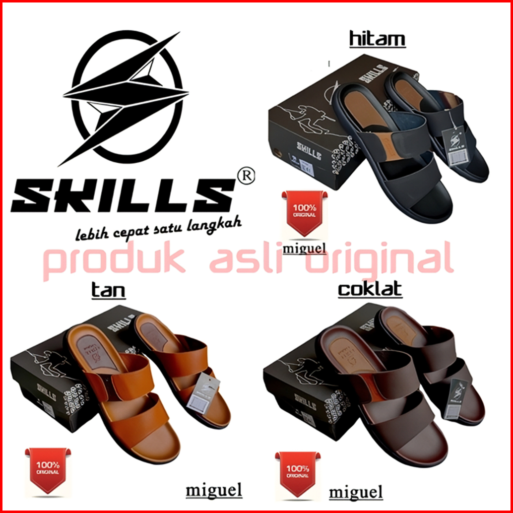 Sandal Skills Barqun Miguel Slop Pria Kulit Original Sendal Santai Casual Premium