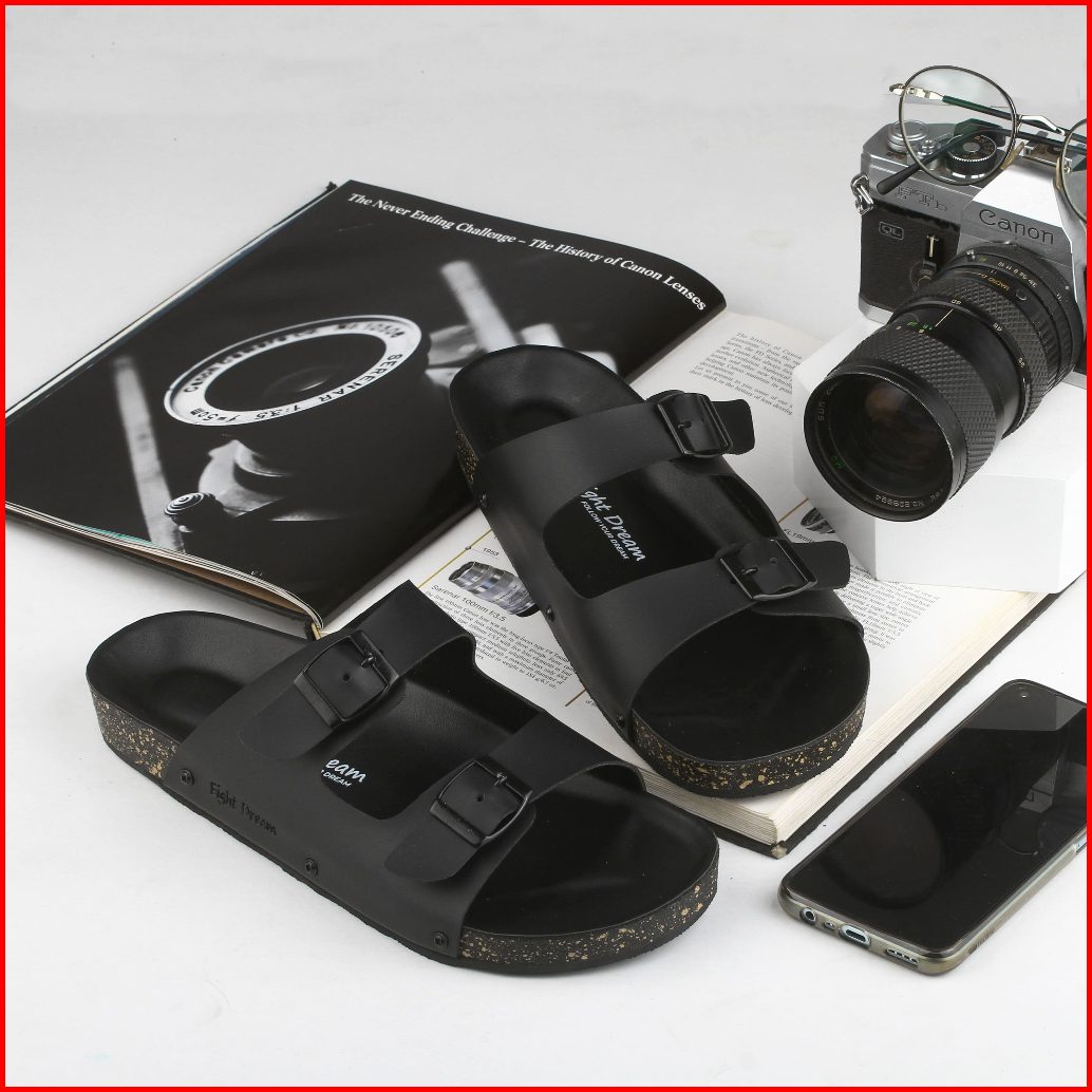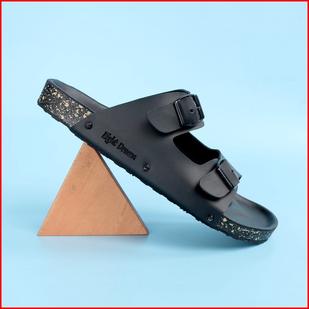Eight Dream - Shuriken Full Black Sandal Slop Kulit Pria