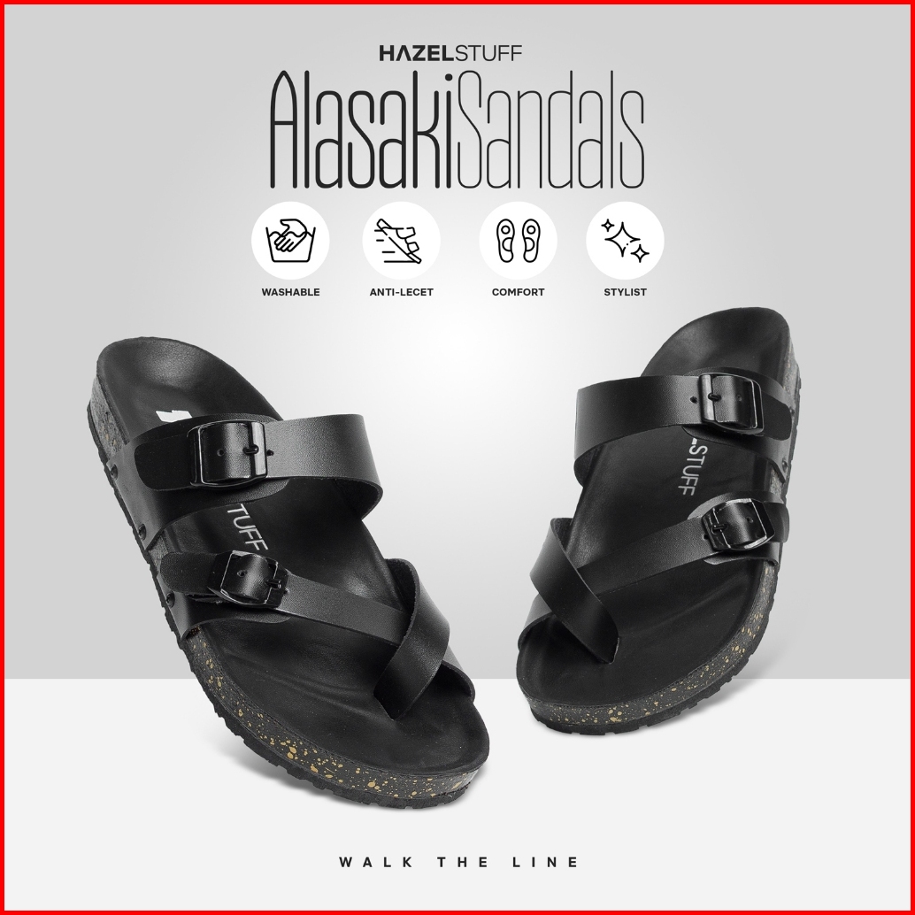 Hazelstuff - Sandal Traveling Slide Pria Wanita Casual Alasaki Black