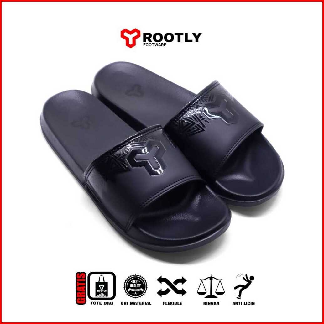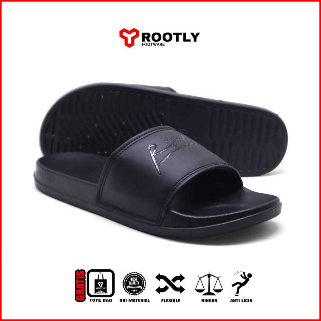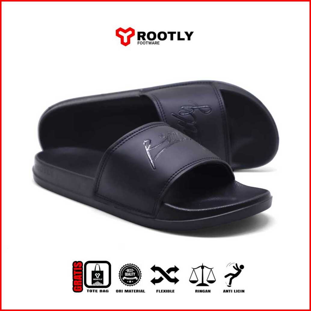 Rootly - Sandal Polos Full Black Slide On Unisex