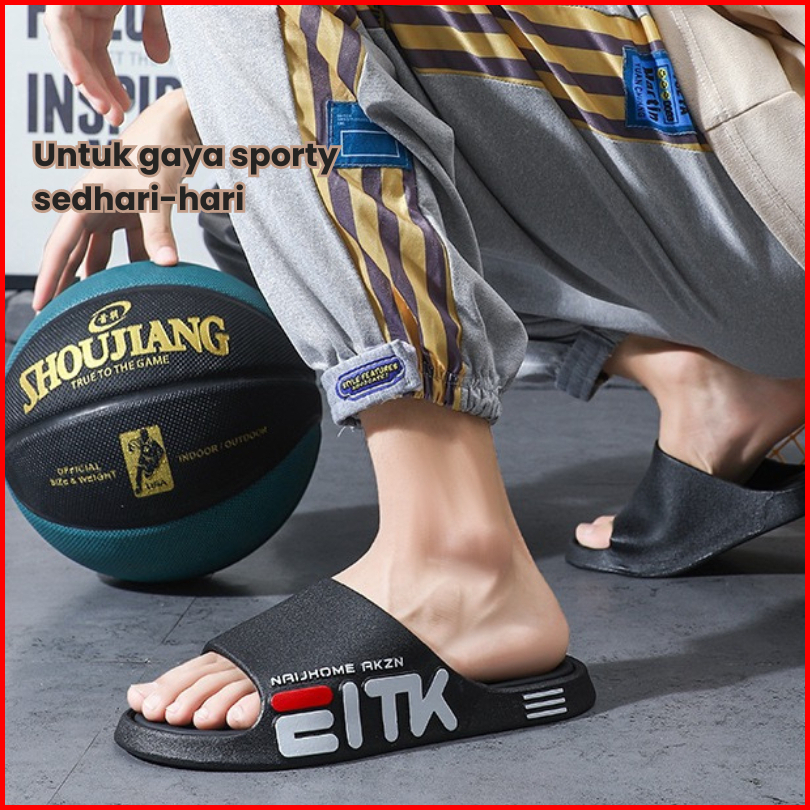 Dejavu Sandal Pria Sandal Slop Pria Sandal Rumah Elastis Kekinian Sandal Hitam Hsn227