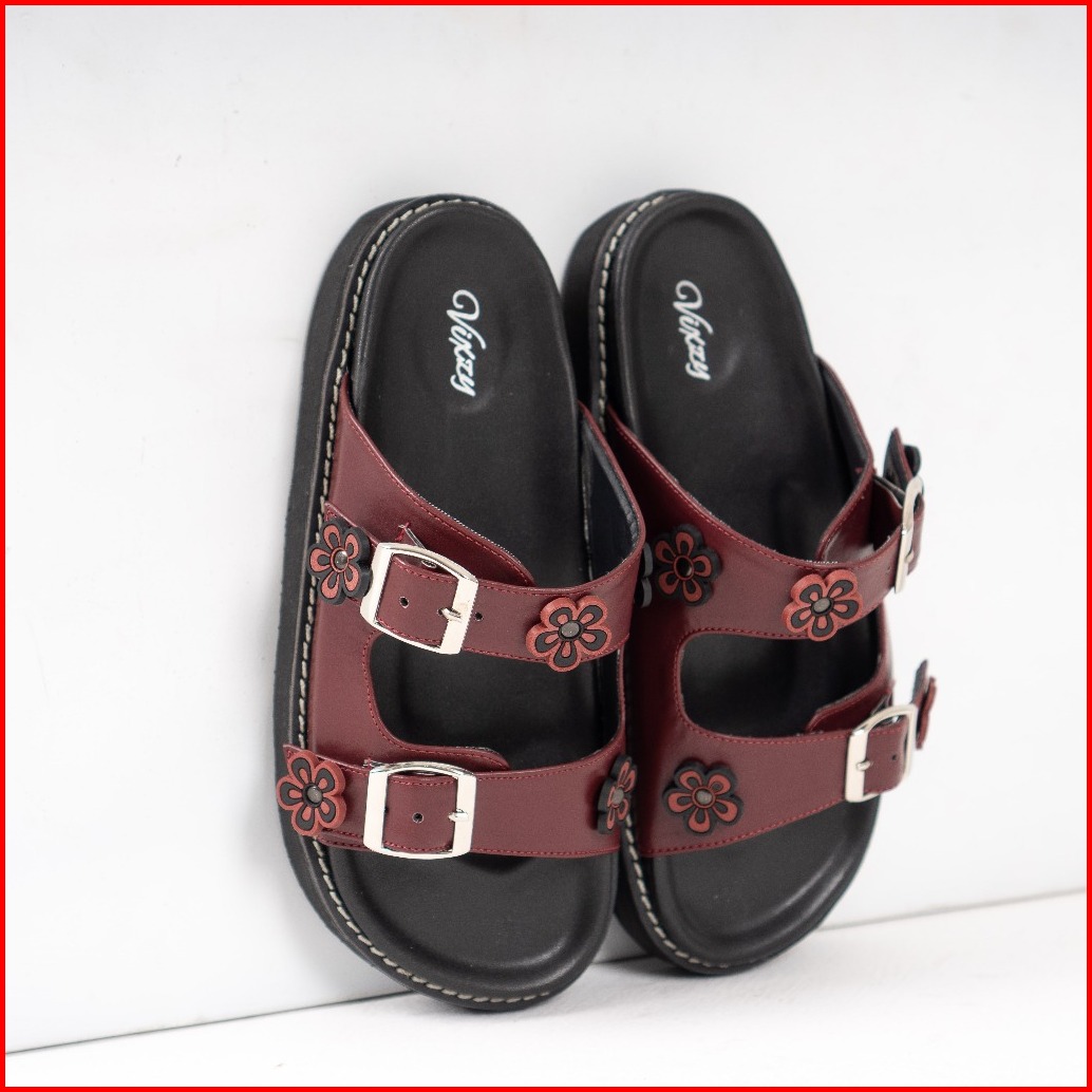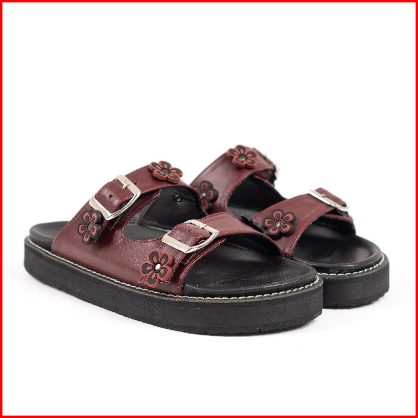 Vixzy89 Sandal Platform Wanita Estetik Tinggi 3cm Jait Sole Empuk Premium Size 36-41 - Edel Burgundy