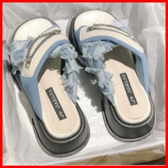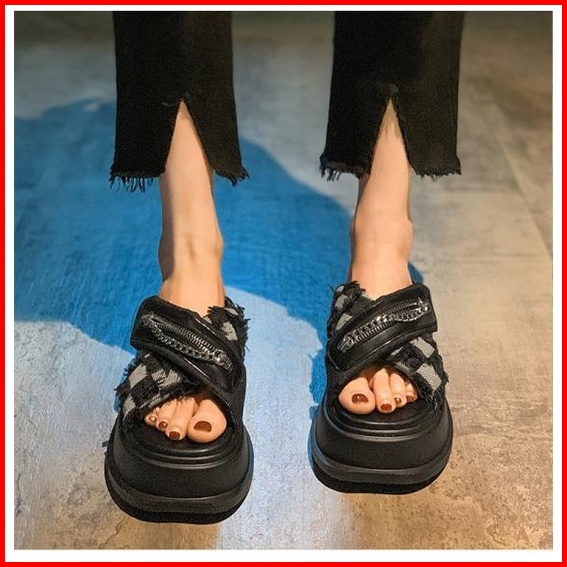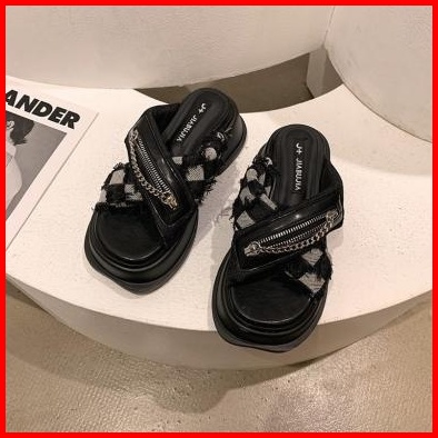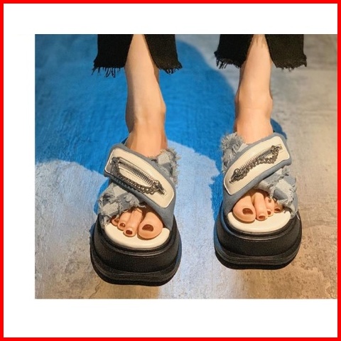 Tebal Bawah Meninggikan Sandal Dan Sandal Untuk Wanita 2022 Musim Panas Gaya Baru Rantai Bersih Merah Tebal Tumit Musim