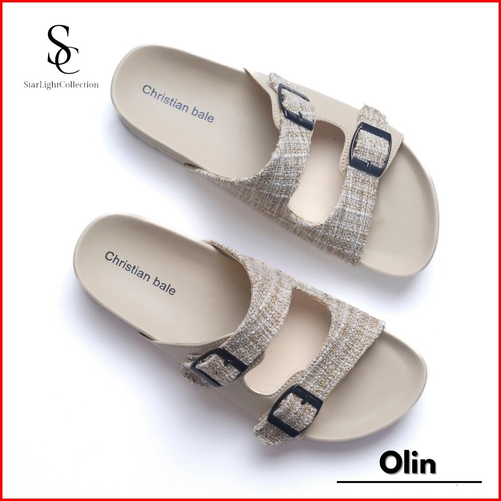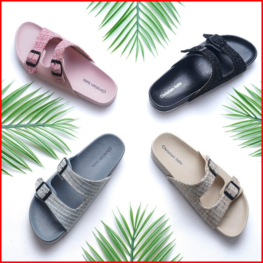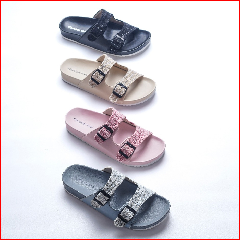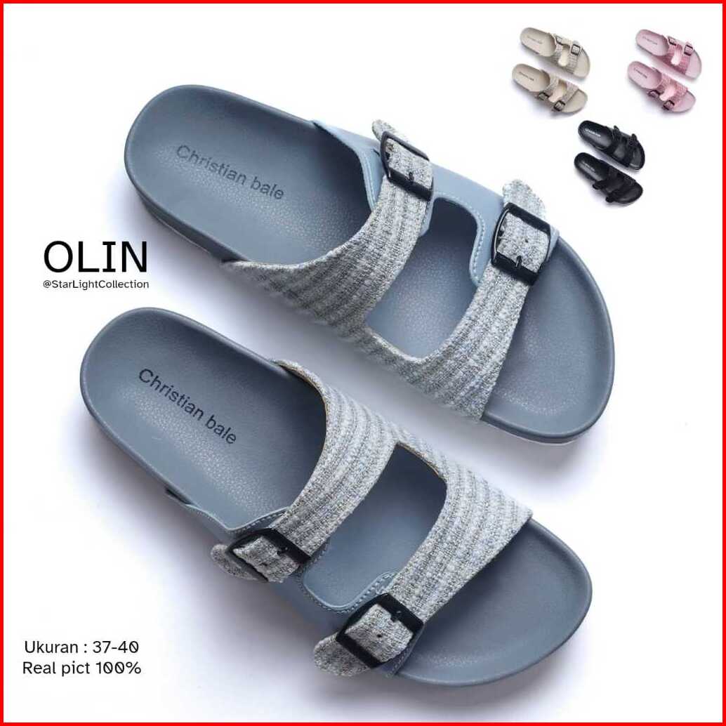 Christian Bale Olin Sandal Wanita Casual Sendal Slop Kekinian Model Ban Dua