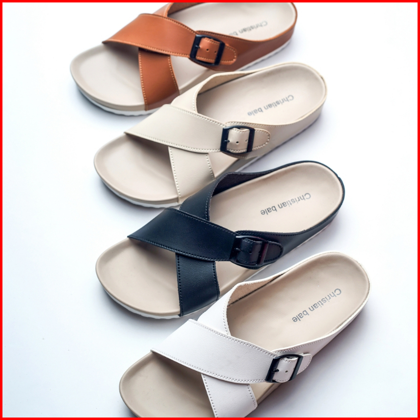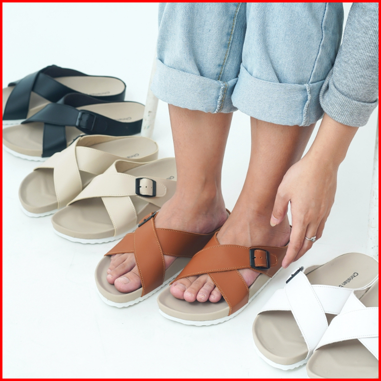Christianbale Jesselyn Sandal Tali Wanita Casual Ban Dua Silang Sendal Slop Cewek Anti Slip Kekinian