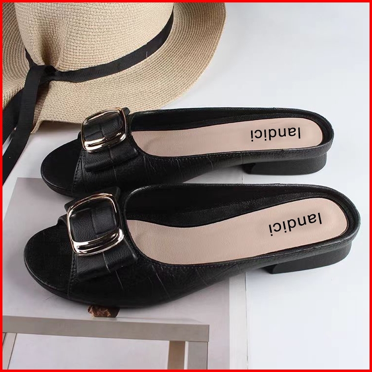 Sandal Wanita Fashion Women Single Shoes Sendal Flat Slop Anti Slip