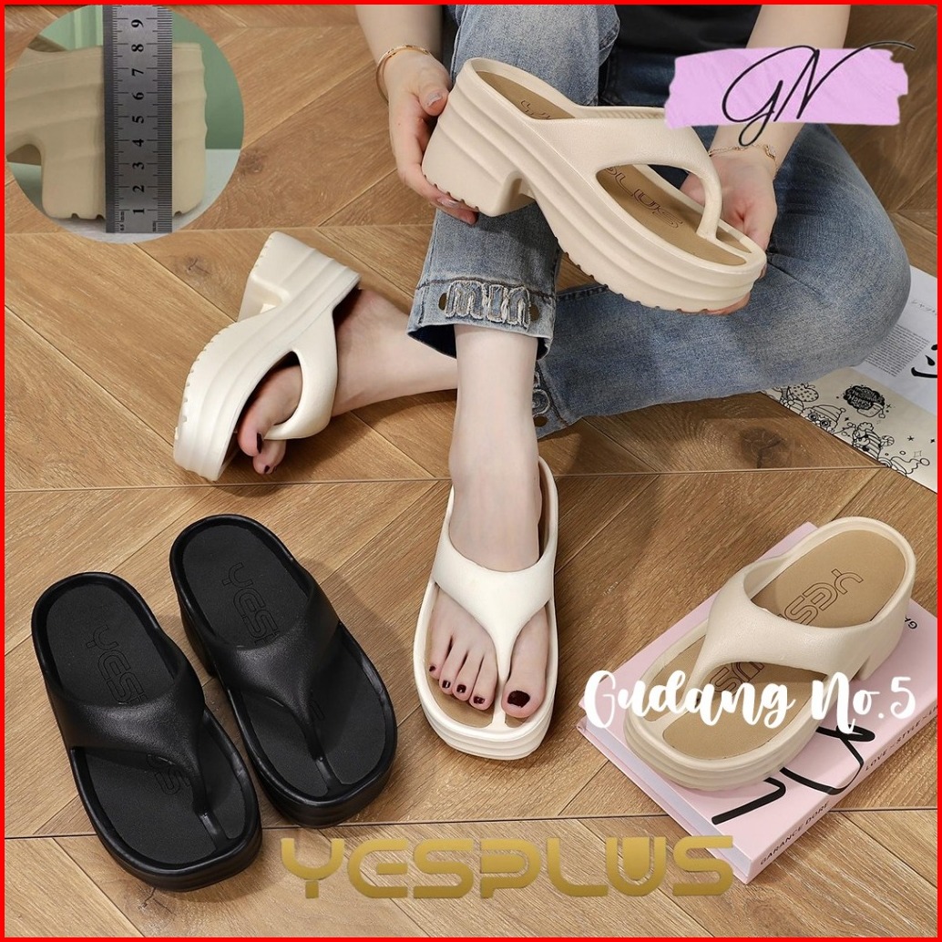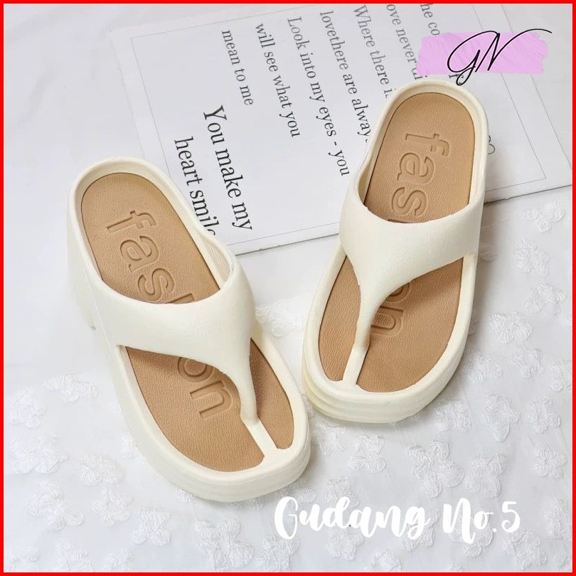 Gn-889 Sandal Jepit Eva Rubber Sol Tebal Sandal Wedges Wanita Tinggi 8 Cm Korean Fashion Import