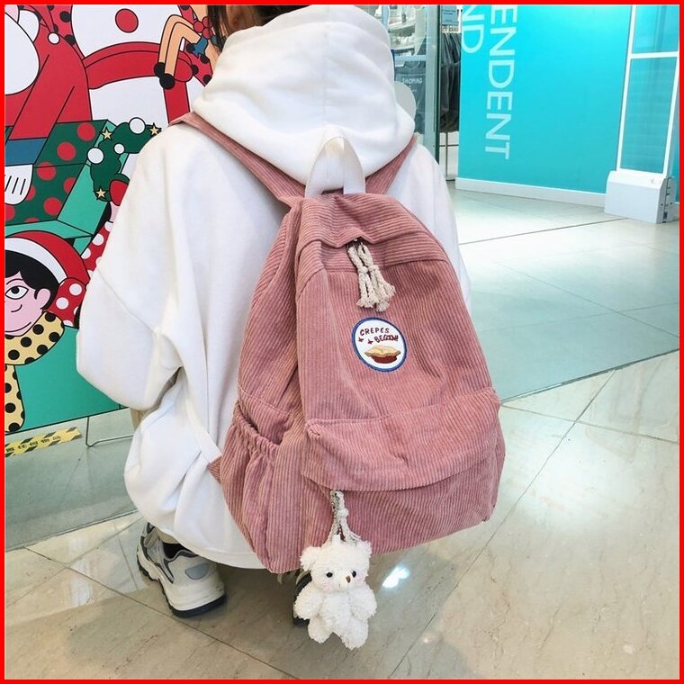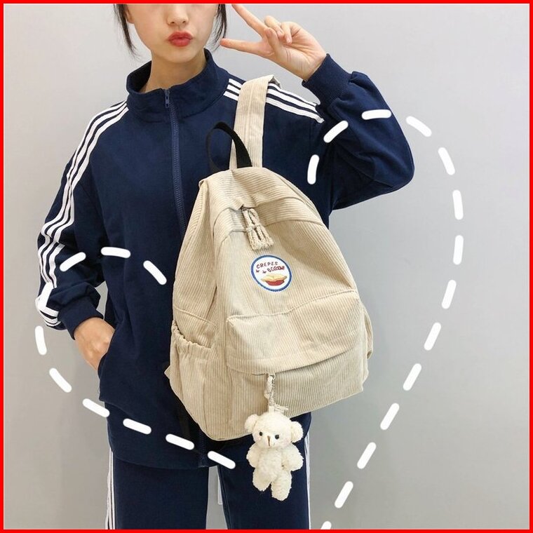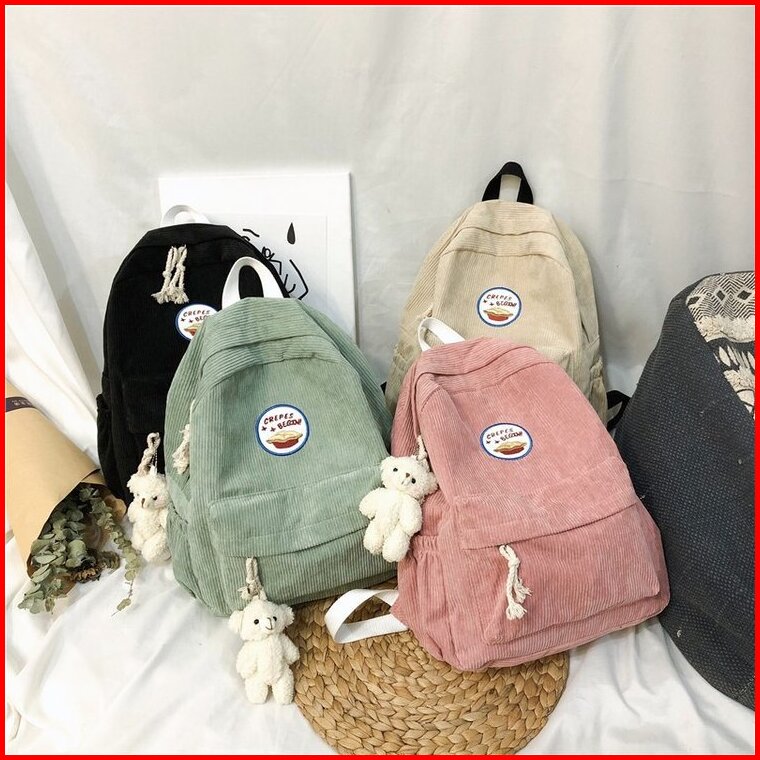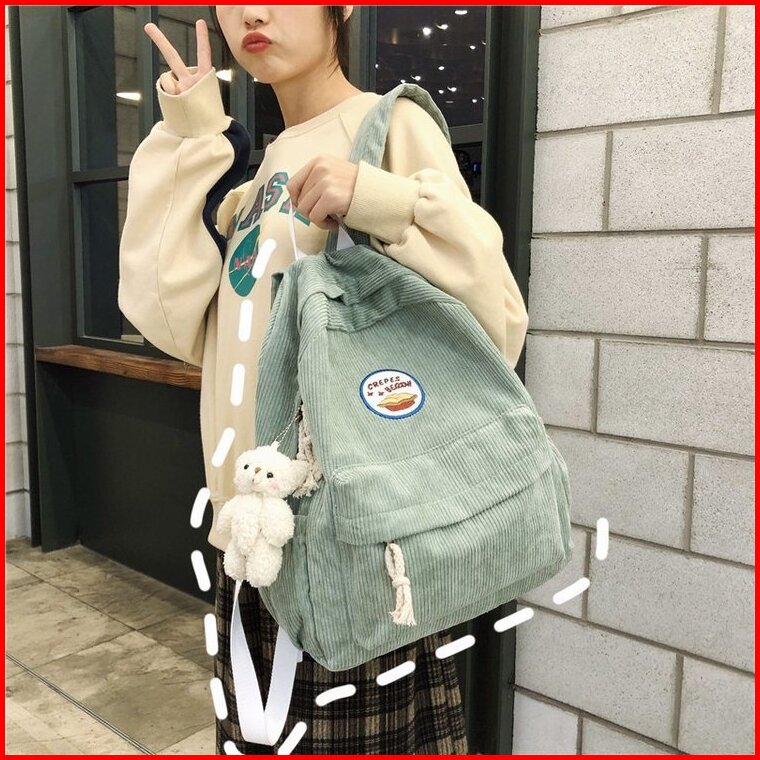 Mismi Flavia Bag Tas Ransel Wanita Korean Style Korduroi Cute School Backpack Perempuan Stylish - 38f