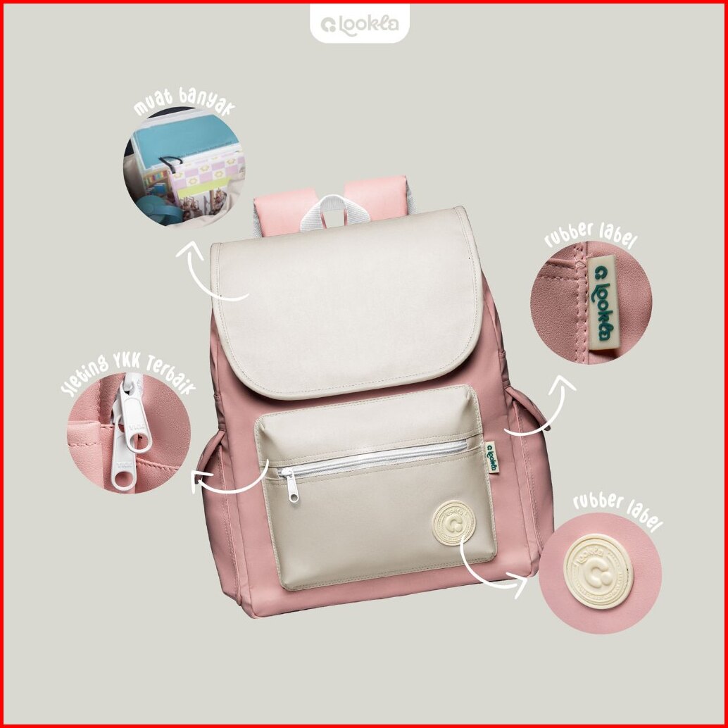 Lookla I Joana Twotone Tas Ransel Wanita Waterproof Backpack Leather Tas Kuliah Sekolah