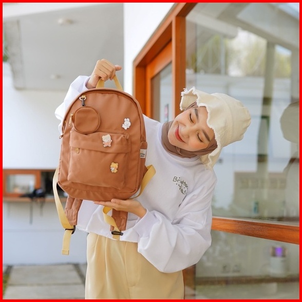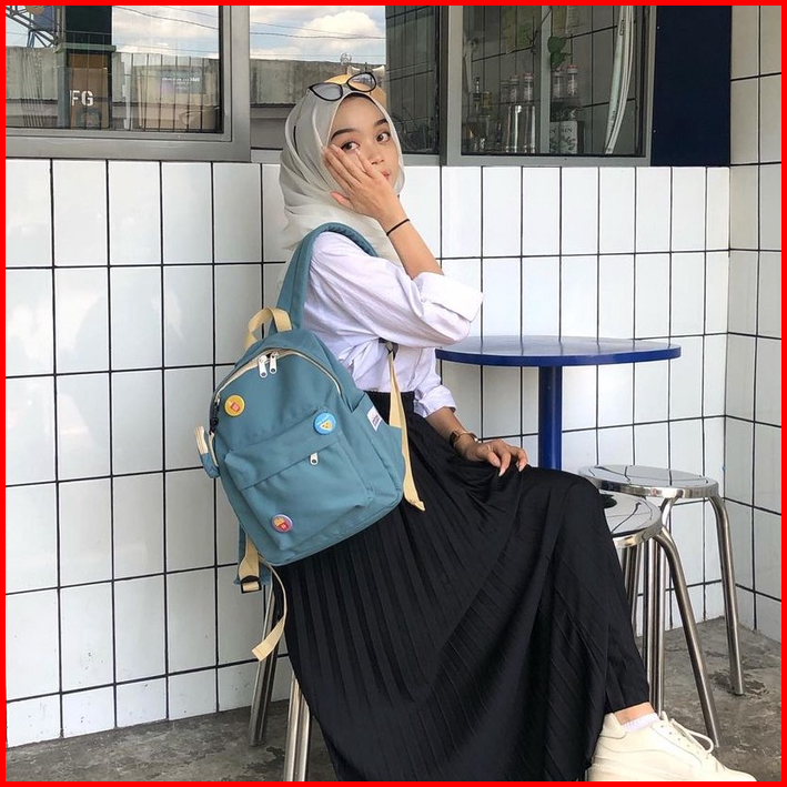 Himeku Pompim Mini Backpack - Tas Kecil - Tas Sekolah Kuliah Kerja - Ransel Kanvas Pria Wanita