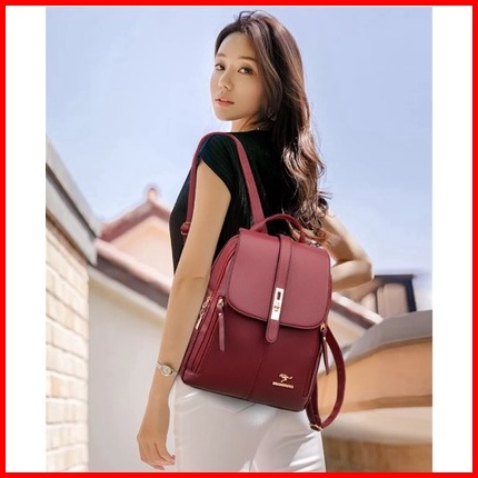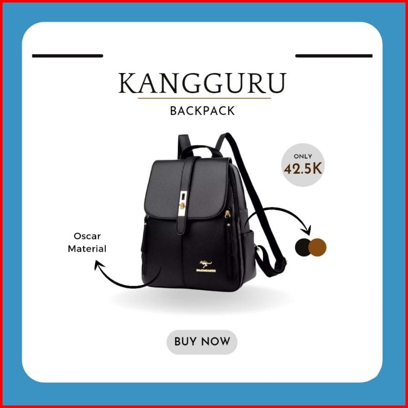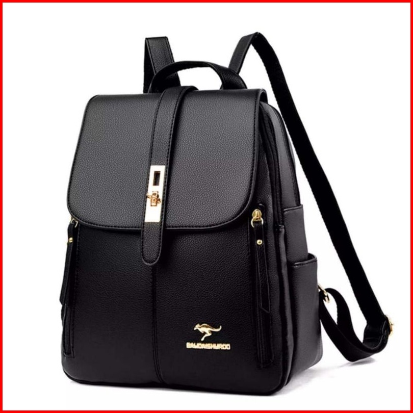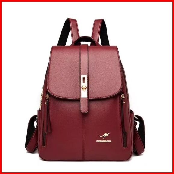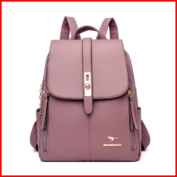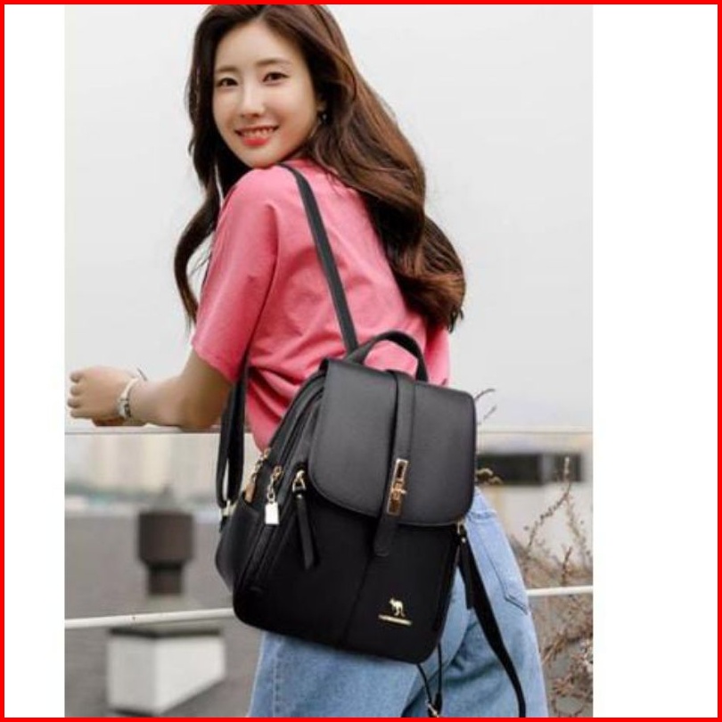 Emoemo-tas Ransel Kulit Wanita Kuliah Backpack Fashion Anti Air Seri Kangguru
