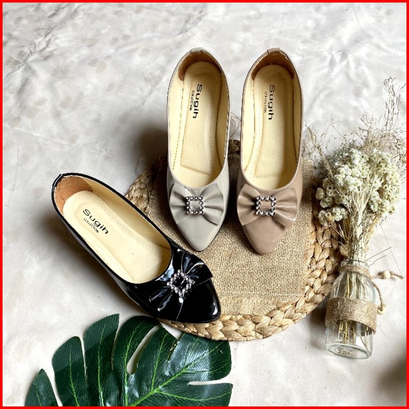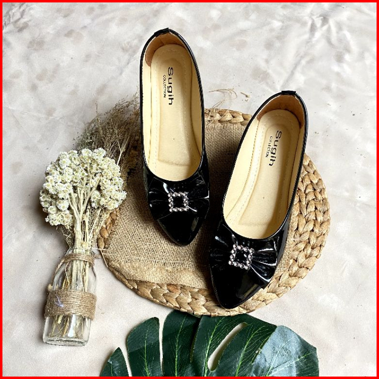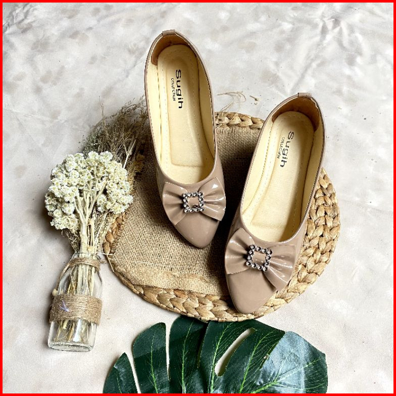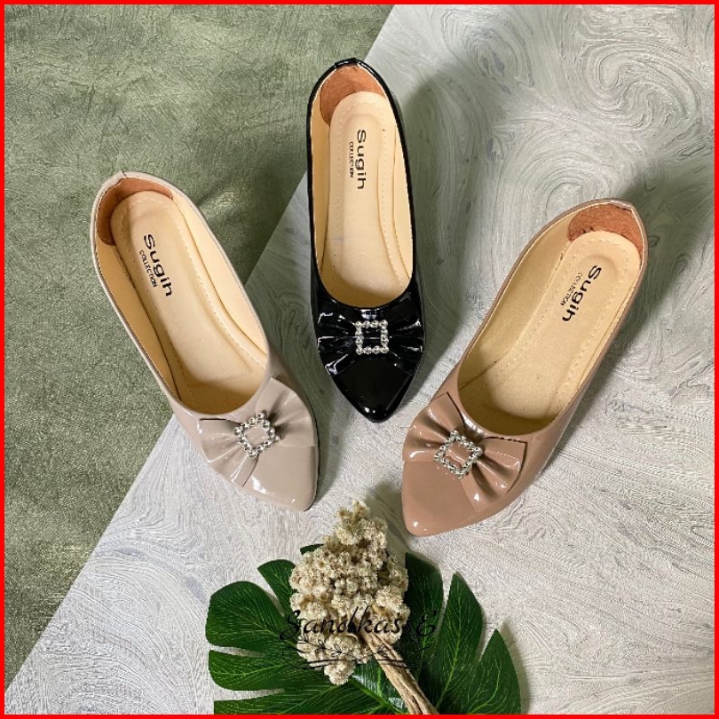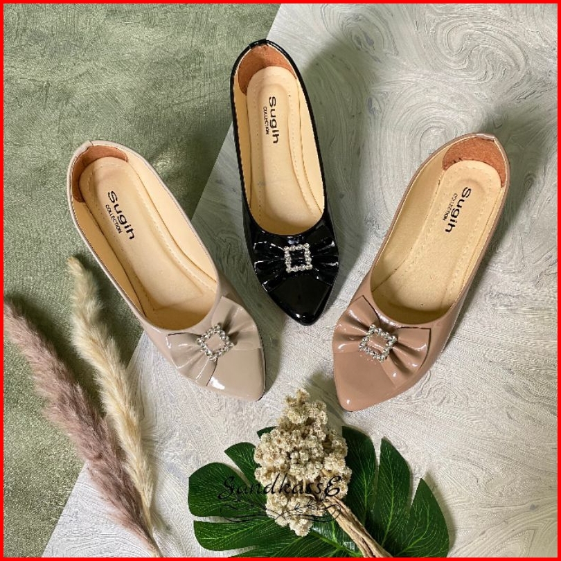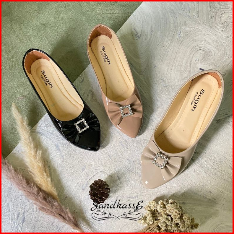 Sandkasse - Hafisa Flatshoes Wanita Glossy Pita Kupu Kotak Non Slip