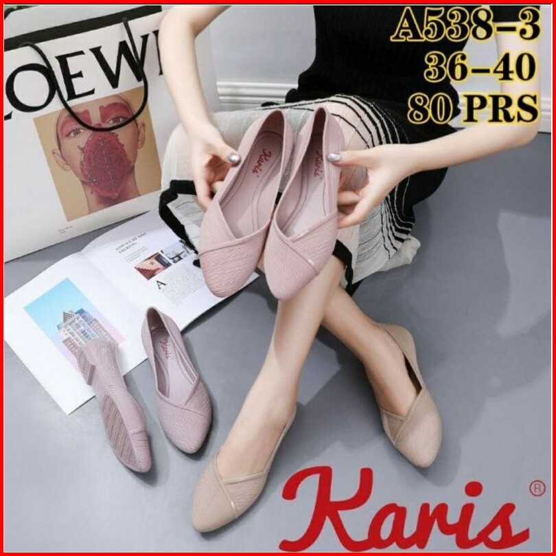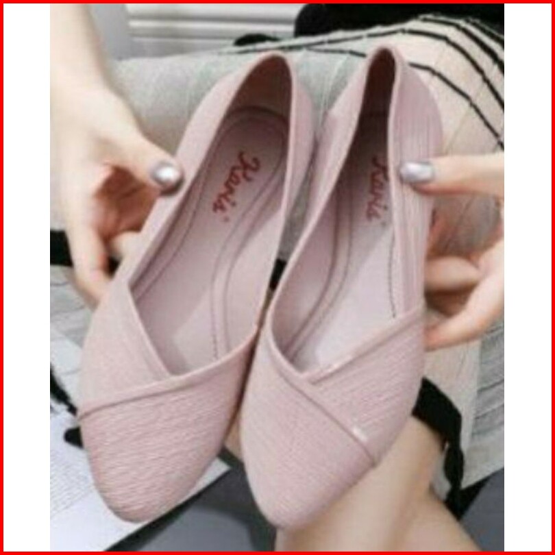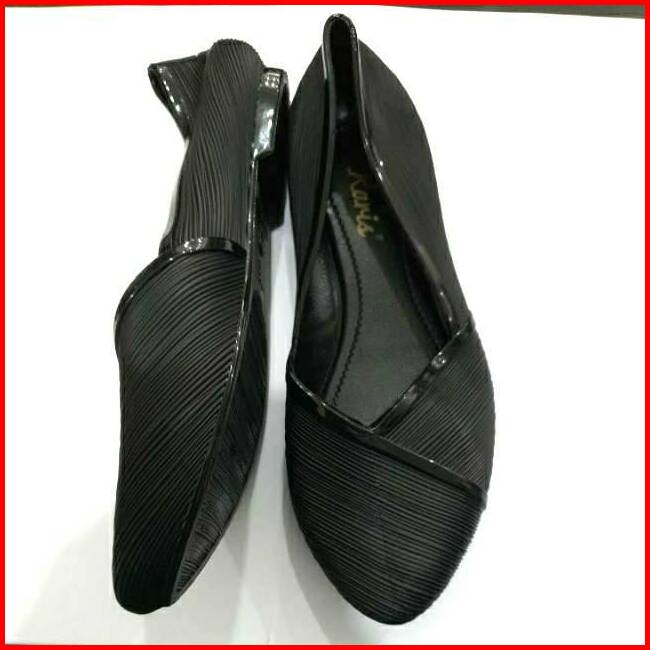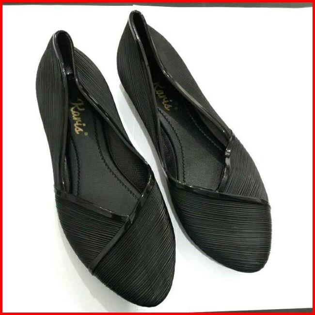 Sepatu Flat Hitam Wanita Karis 538 Sepatu Kantor Untuk Kerja Sekolah Kuliah Karet Lentur