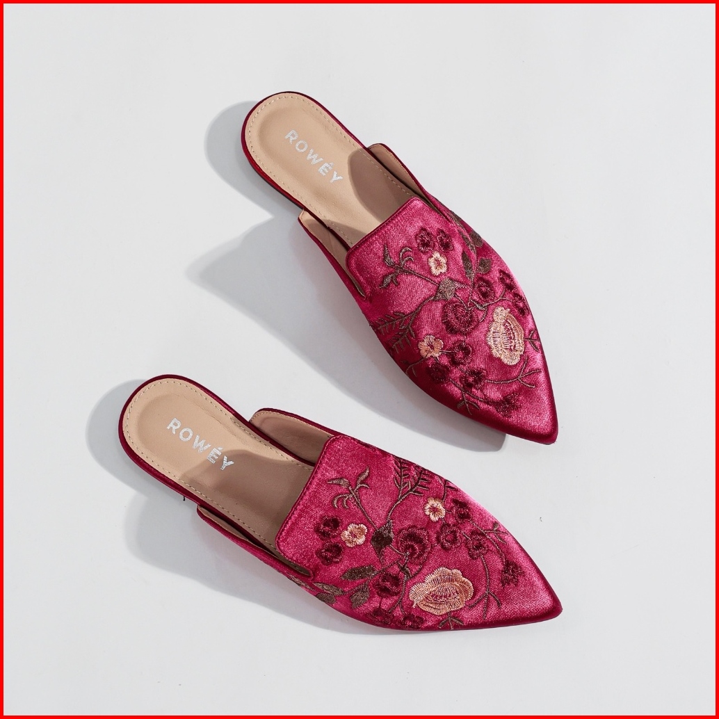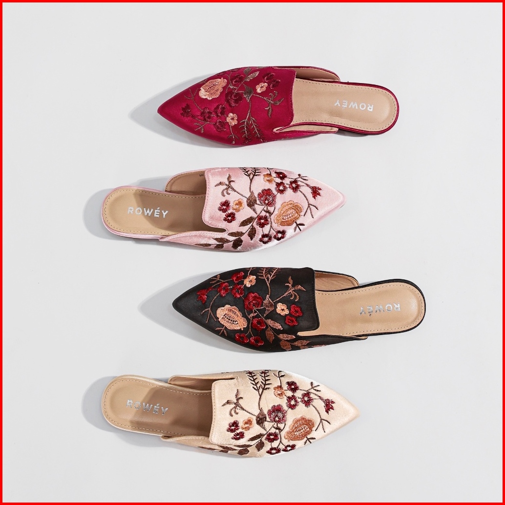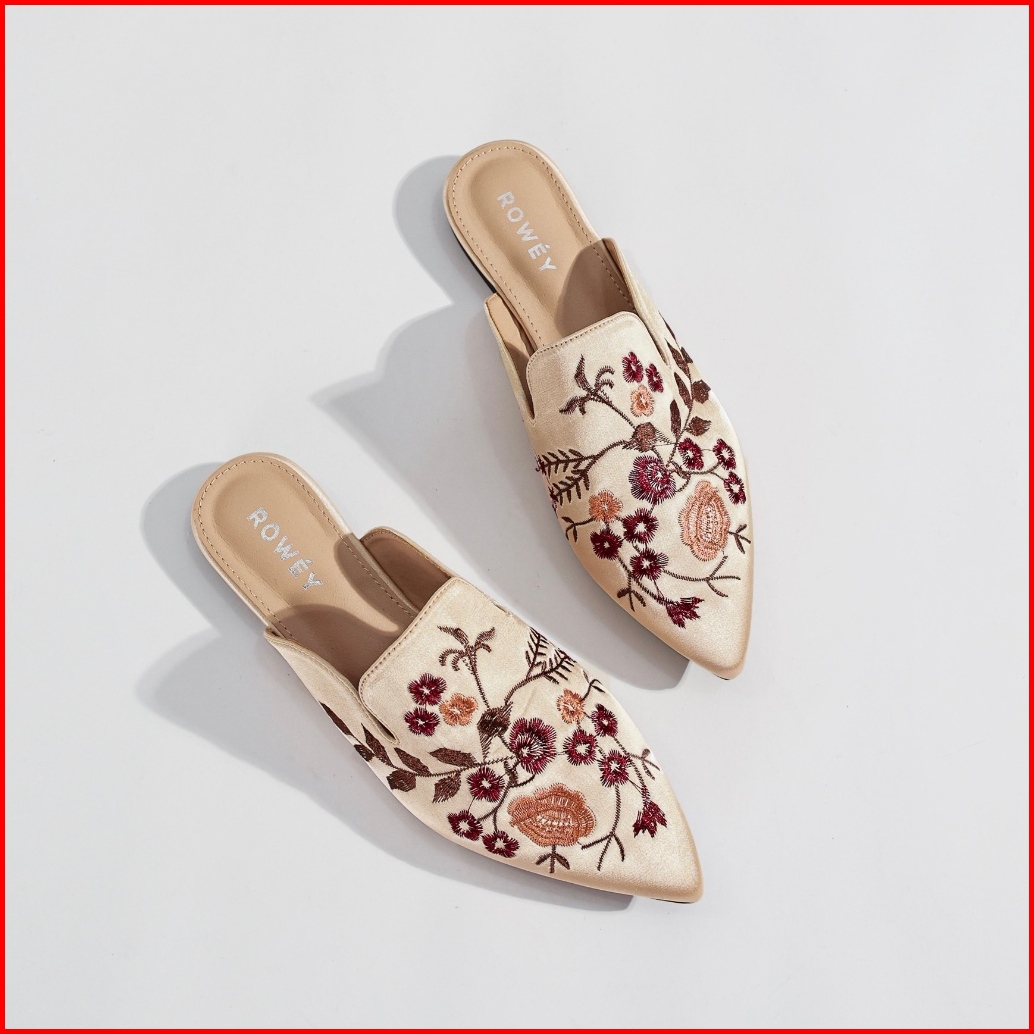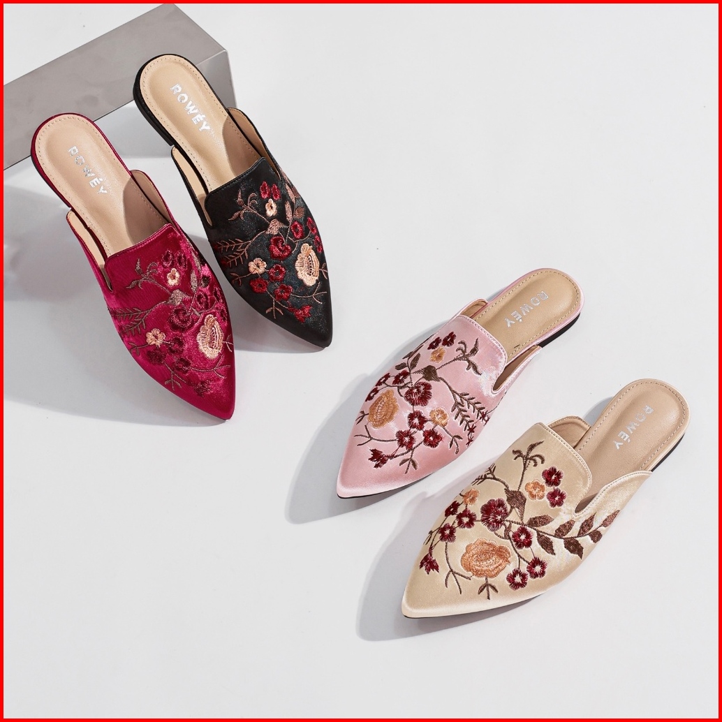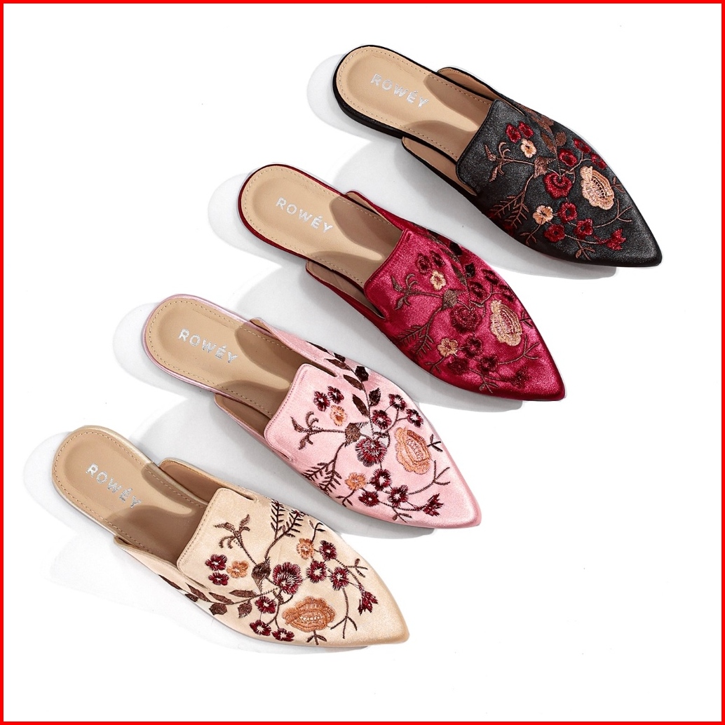 Rowey Sepatu Sandal Bordir Flat Wanita Mewah Dan Elegant Monalisa