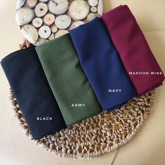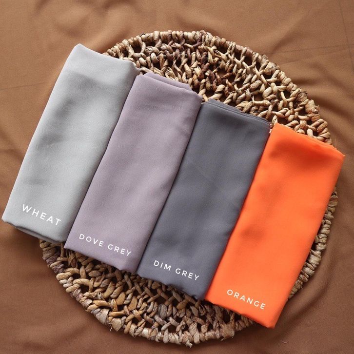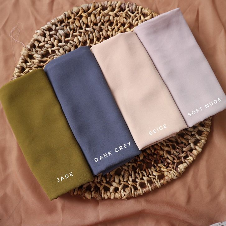 HITAM , BIRU NAVY, LIME, ABU ABU, BROWNN SUGAR, MAROON Waine, BEIGE, LYLAC, DUSTY PINK, ARMY , MILO, PUMPKIN , JADE, SOFT NUDE, BROKEN WHITE, DOVE GREY, DIM GREY