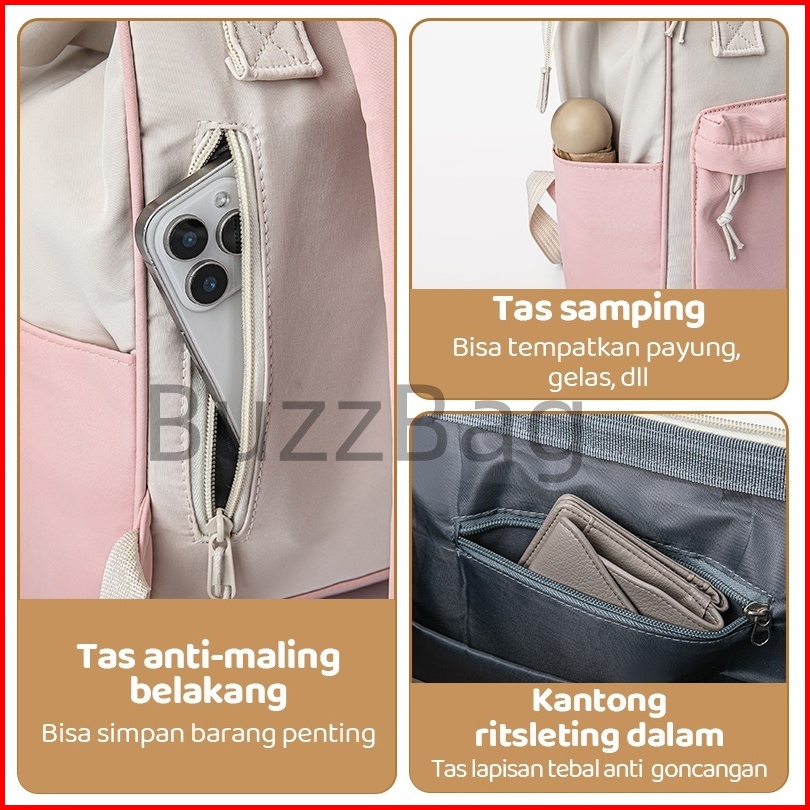 Buzzbag - Ransel Sekolah Wanita Tas Sekolah Korean Style Ransel Perjalanan Seni Siswa Sekolah Wanita Import Korea Sma Mu