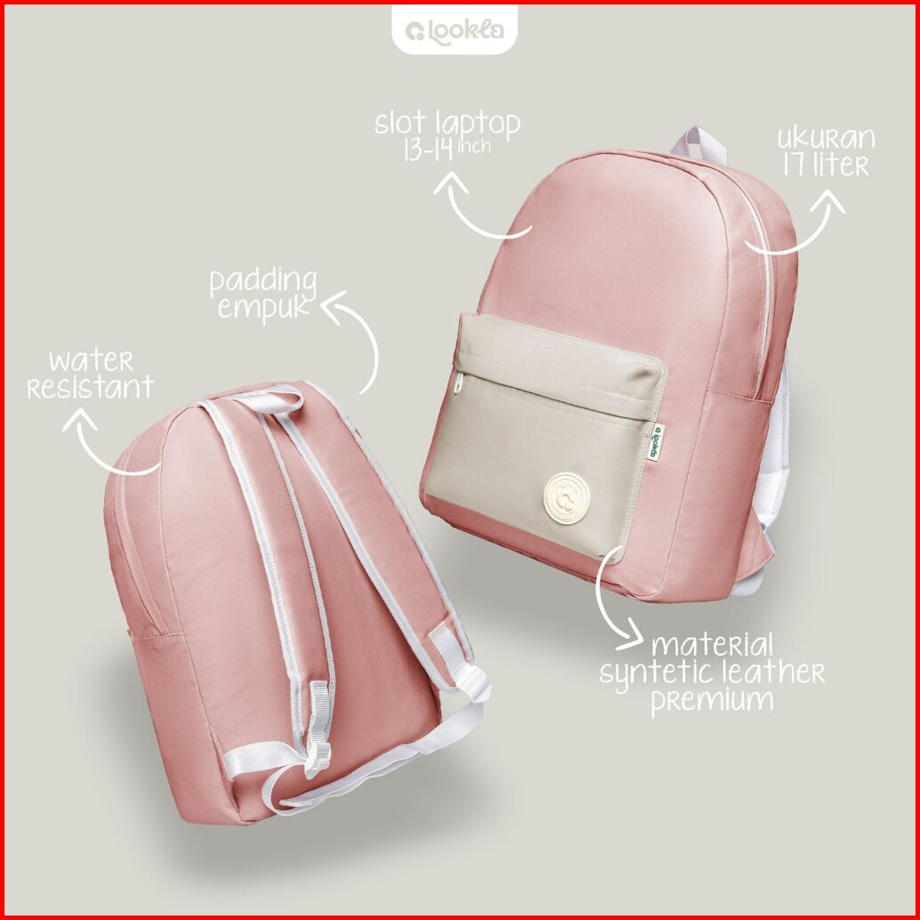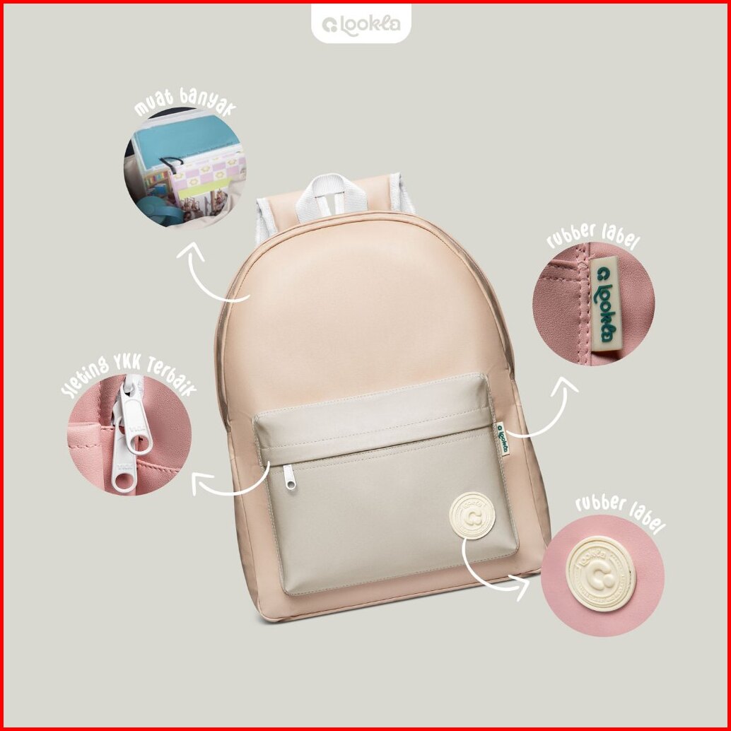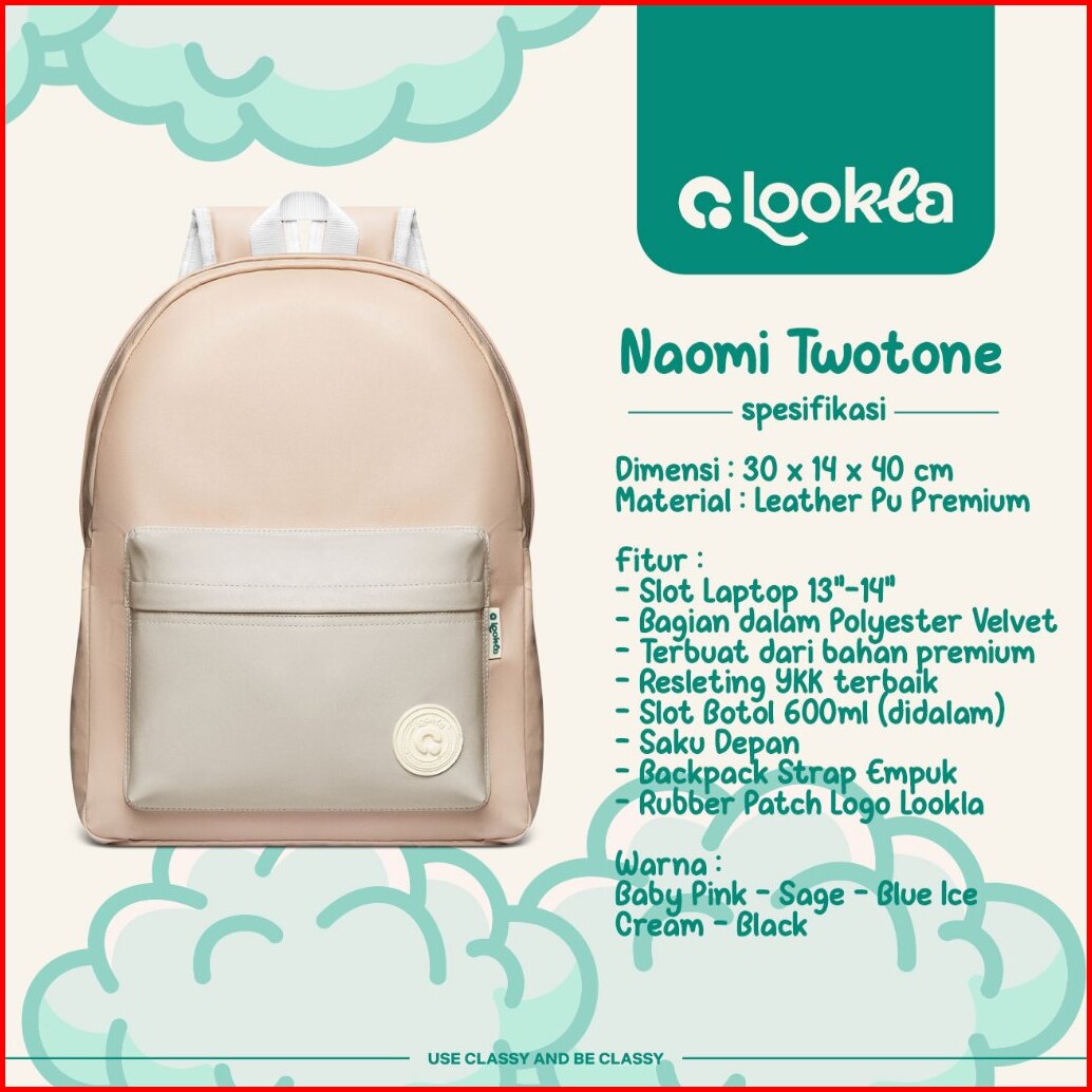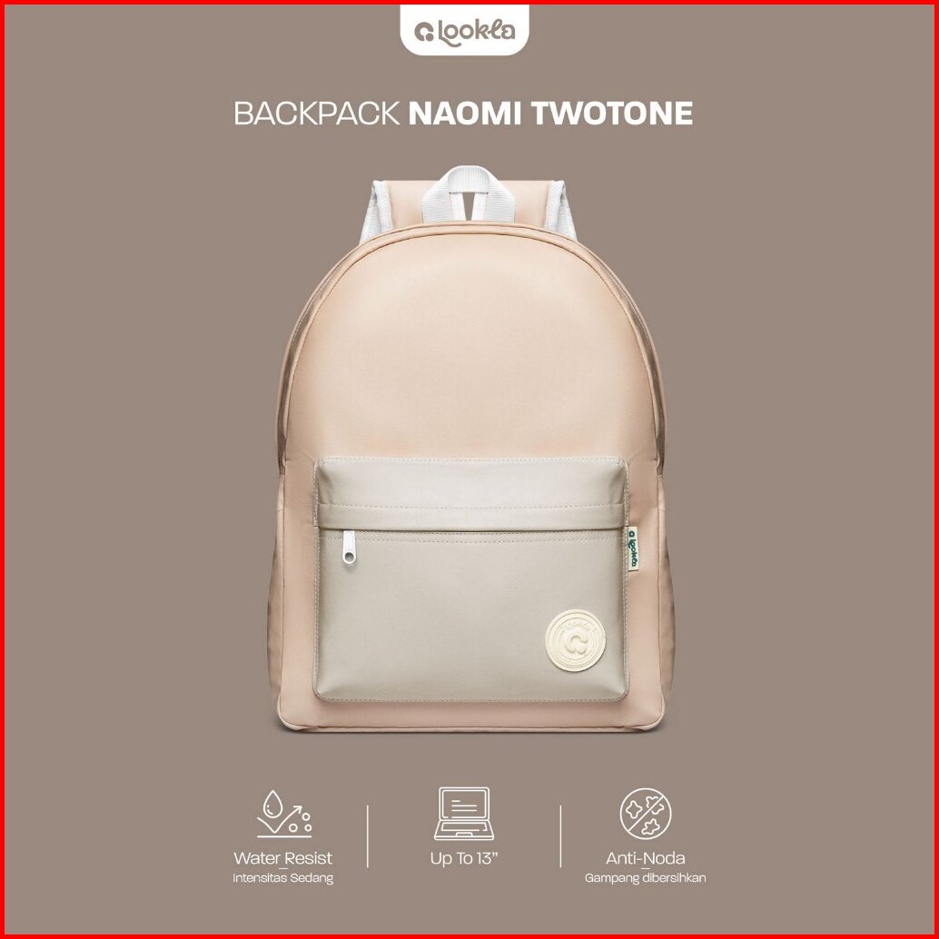 Lookla I Naomi Twotone Tas Ransel Wanita Stylish Backpack Sekolah Kuliah Kerja Bahan Anti Air