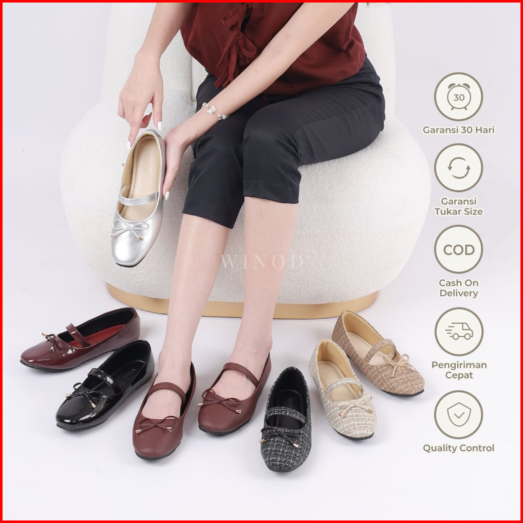 Winod Liza Flatshoes Wanita Sepatu Slip On Flat Kerja Model Ballet Daily
