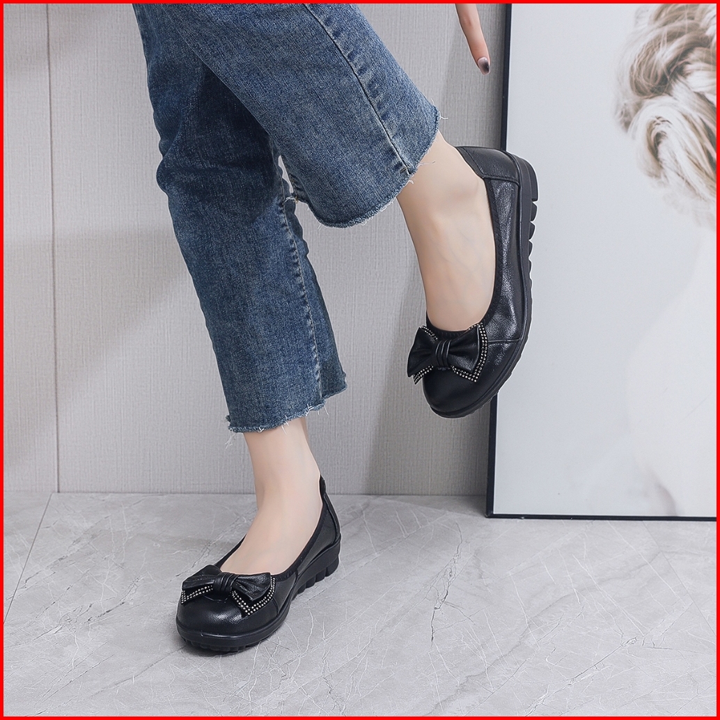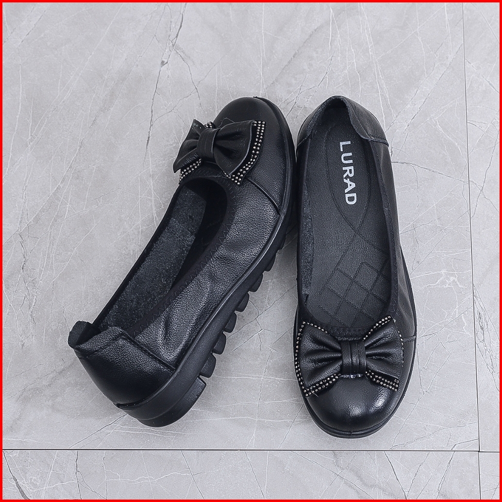 Lurad Sepatu Cewek Flat Shoes Hitam Wanita Motif Pita Kualitas Terbaik Nyaman Dipakai Kasual Formal 1887