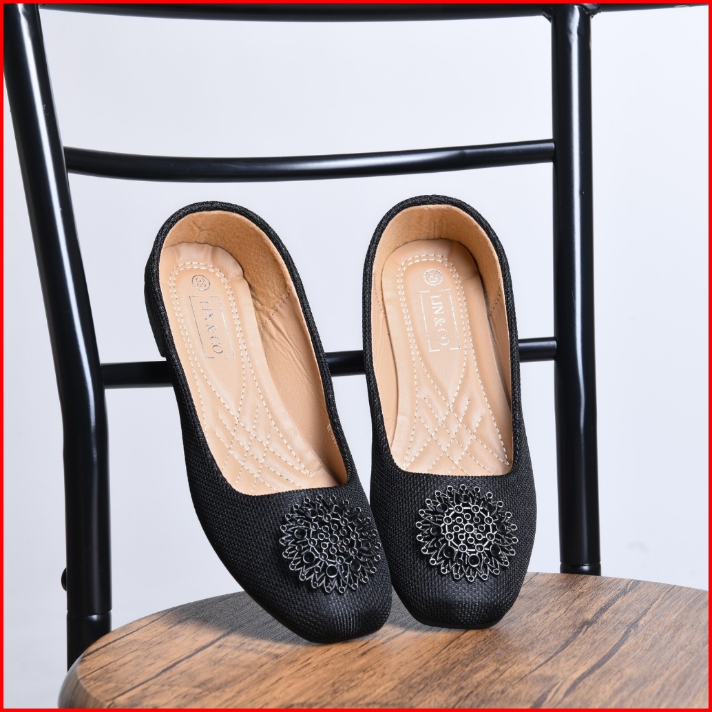 Beli 2 Gratis 1 Sajadah - Lin Co -emma Sepatu Flat Wanita 2025 Bunga Elegan Anti Slip Nyaman Untuk Kerja Kantor Casual F