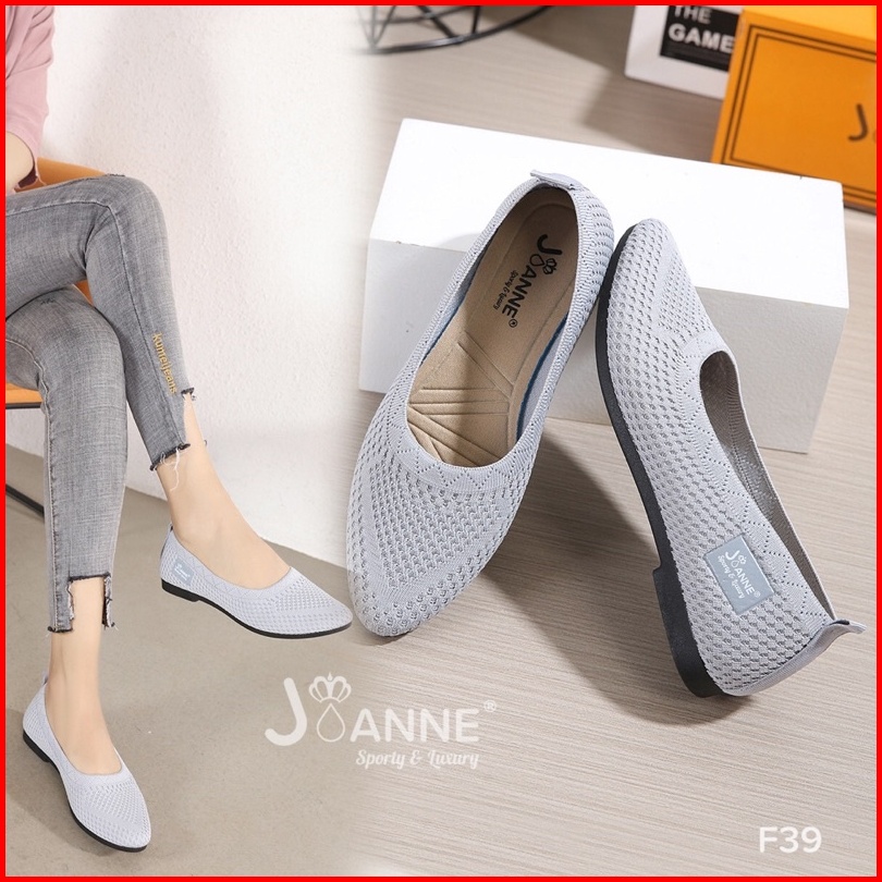 Joanne Footwear Flyknit Flat Shoes Sepatu Wanita F39