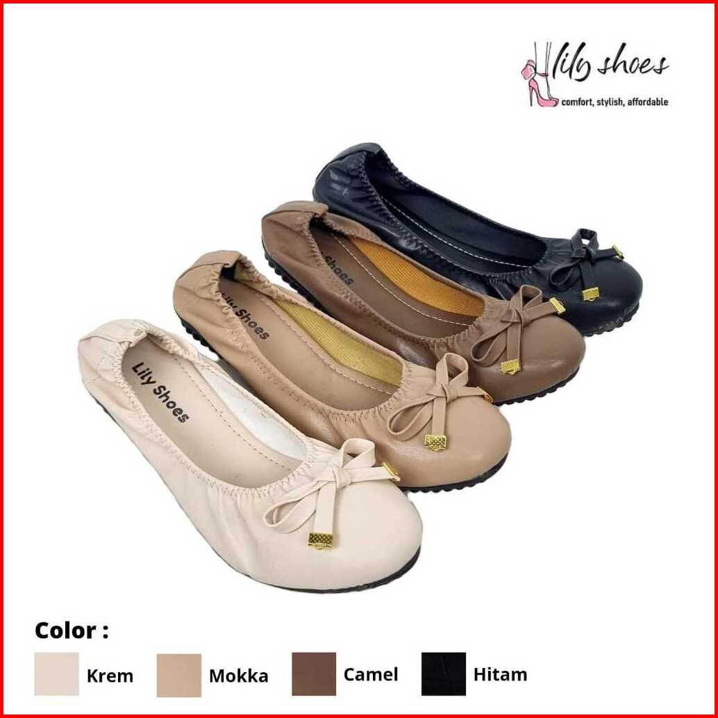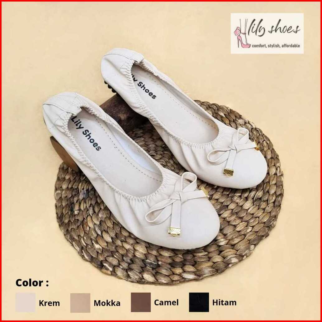 Lily Shoes - Mochimochi Sepatu Wanita Flatshoes Balerina Teplek Kerut Casual