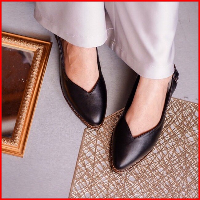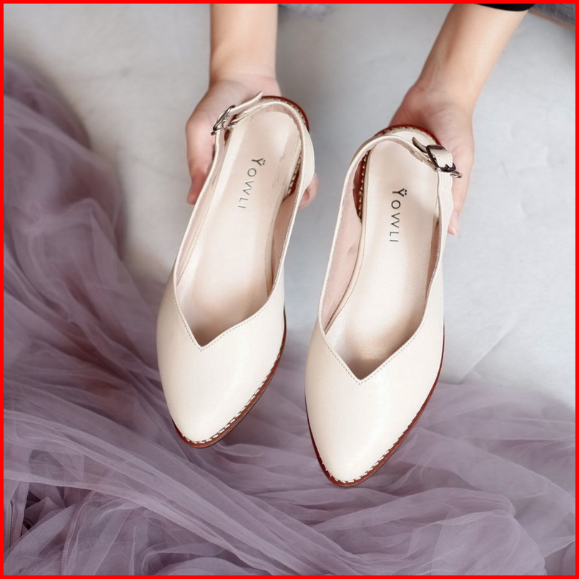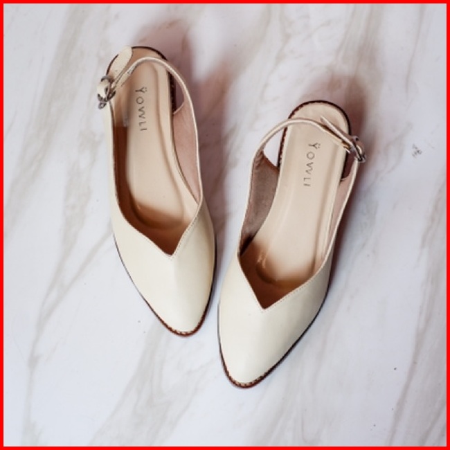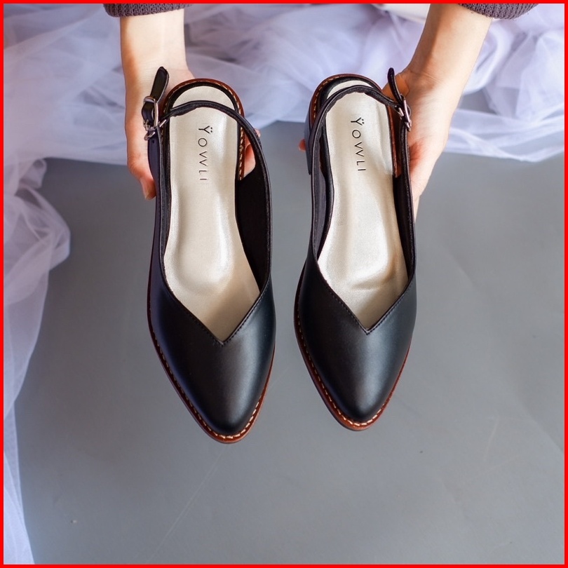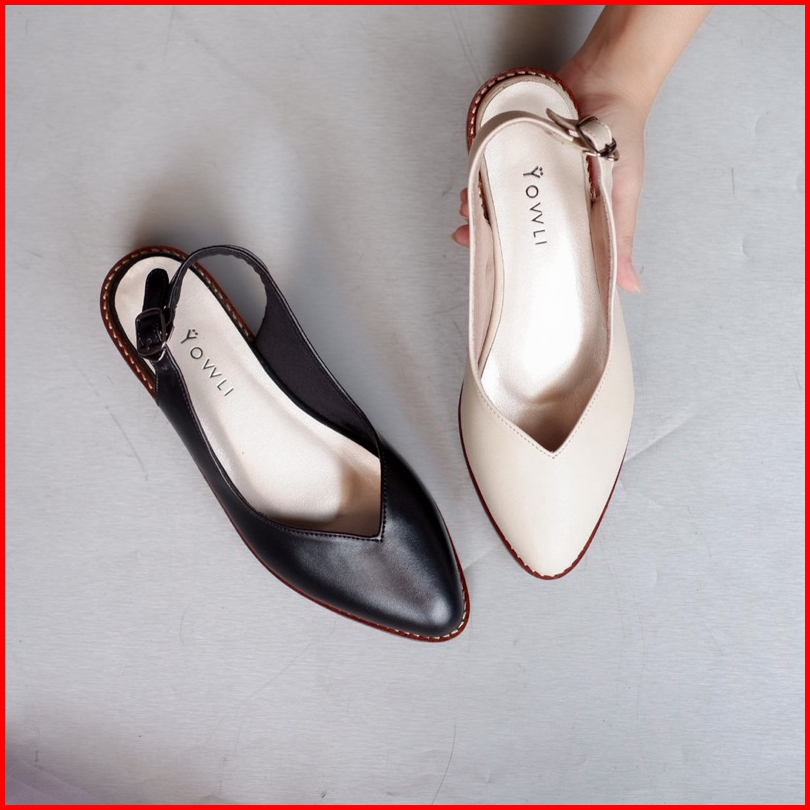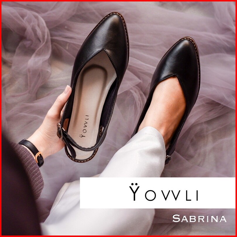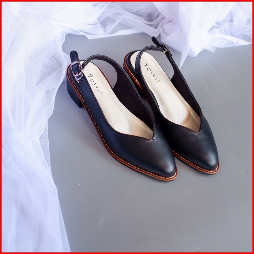 Yovvli Sabrina Flat Shoes Kulit Sepatu Kerja Wanita Hak 3 Cm