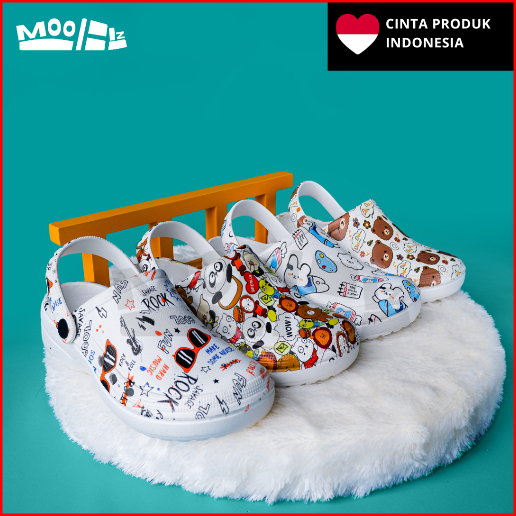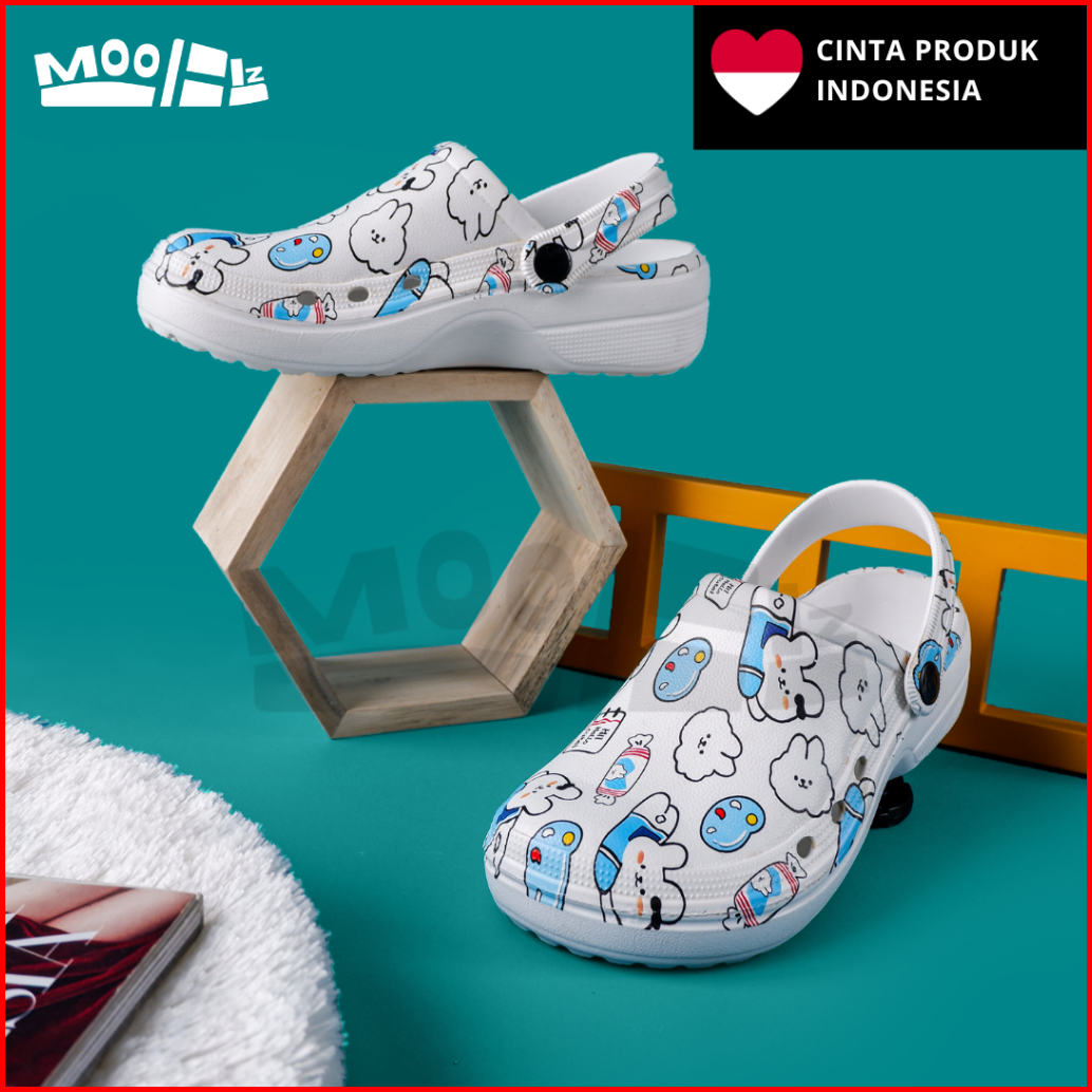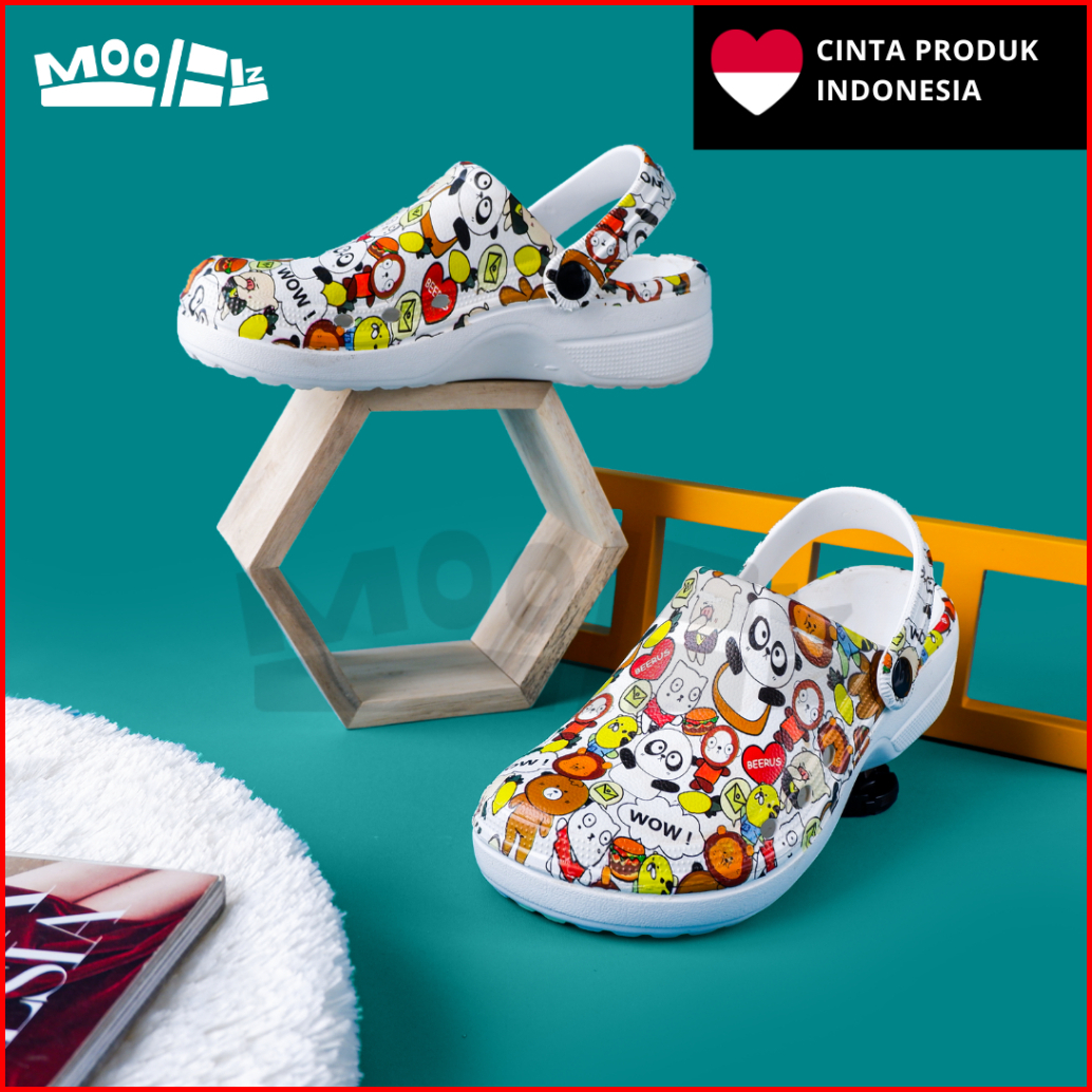 Moobiz.id Sendal Kodok Printing Wanita Dewasa Sandal Clog Karakter Kartun Lucu Size 36-40