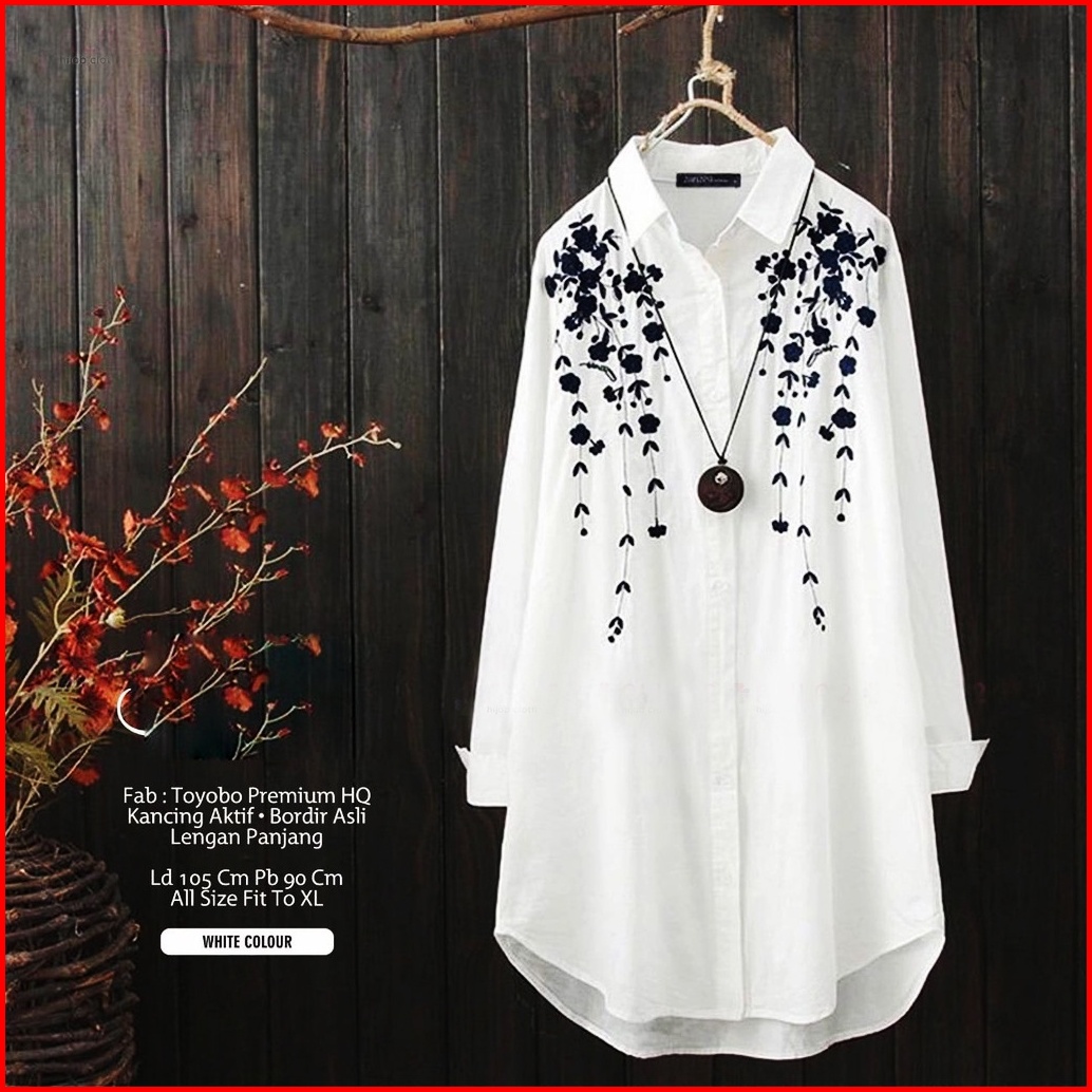 Kemeja Wanita Putih Bersih Bahan Katun Toyobo Kiana Sazura Navy Flower Pink Flower Mayra Nadira