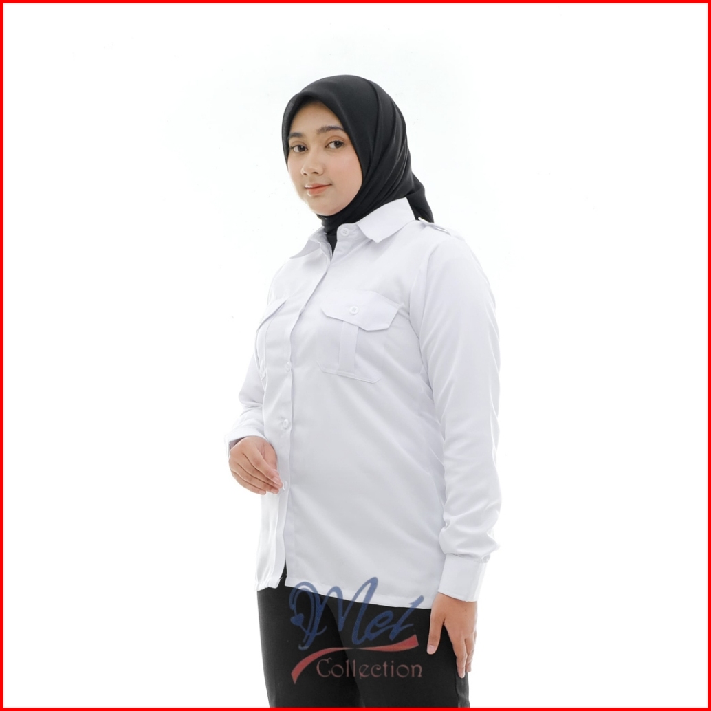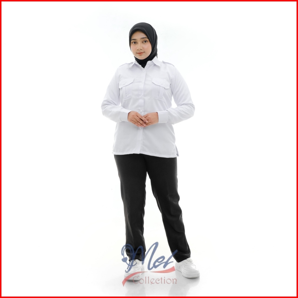 Premium Baju Dinas Pns Putih Wanita Kemeja Pdh Safari Lengan Panjang Bahan High Twist Adem Seragam Pns Putih Wanita Keme