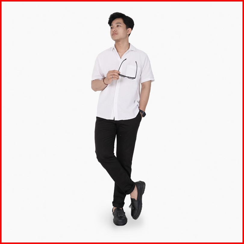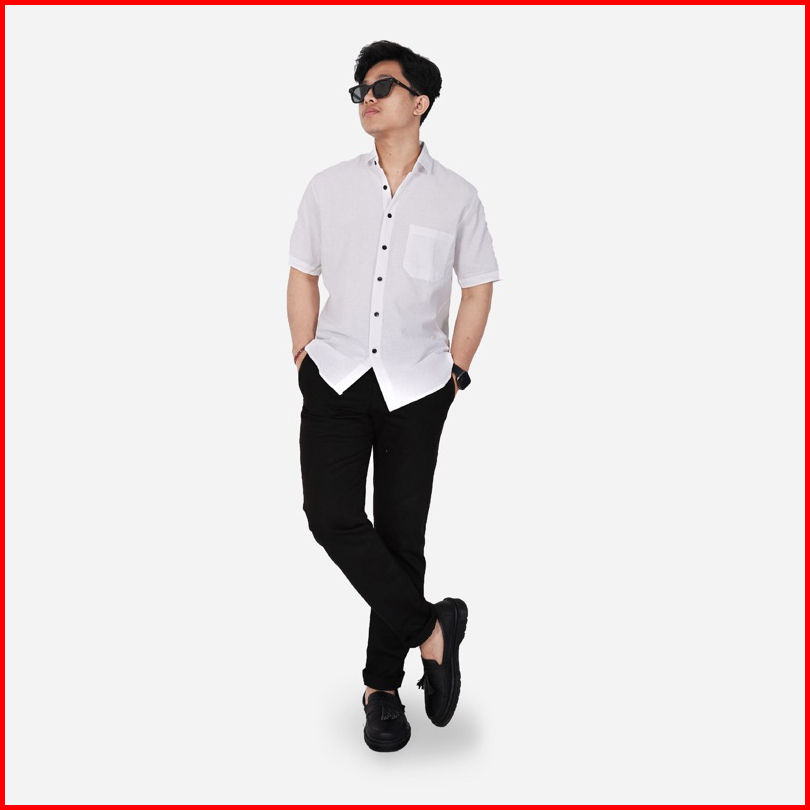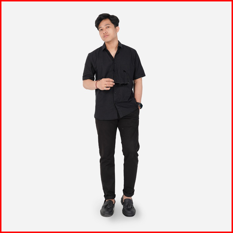 Putih Kancing Putih, Putih Kancing Hitam, Hitam, Cokelat Muda, Maroon, Hijau Tua, Cokelat, Green Mint, Kaos Polos Hitam 35