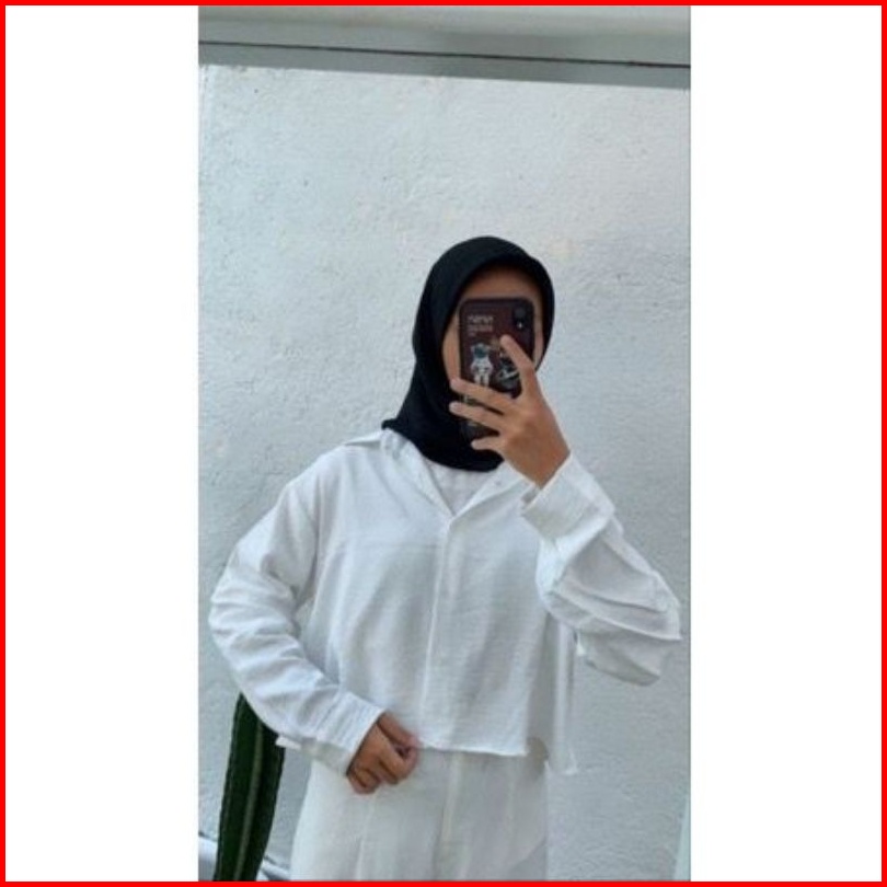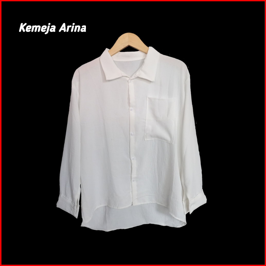Kemeja Putih Wanita Crinkle Atasan Kerja Polos Hitam Putih Lengan Panjang Terbaru Kekinian Terlaris