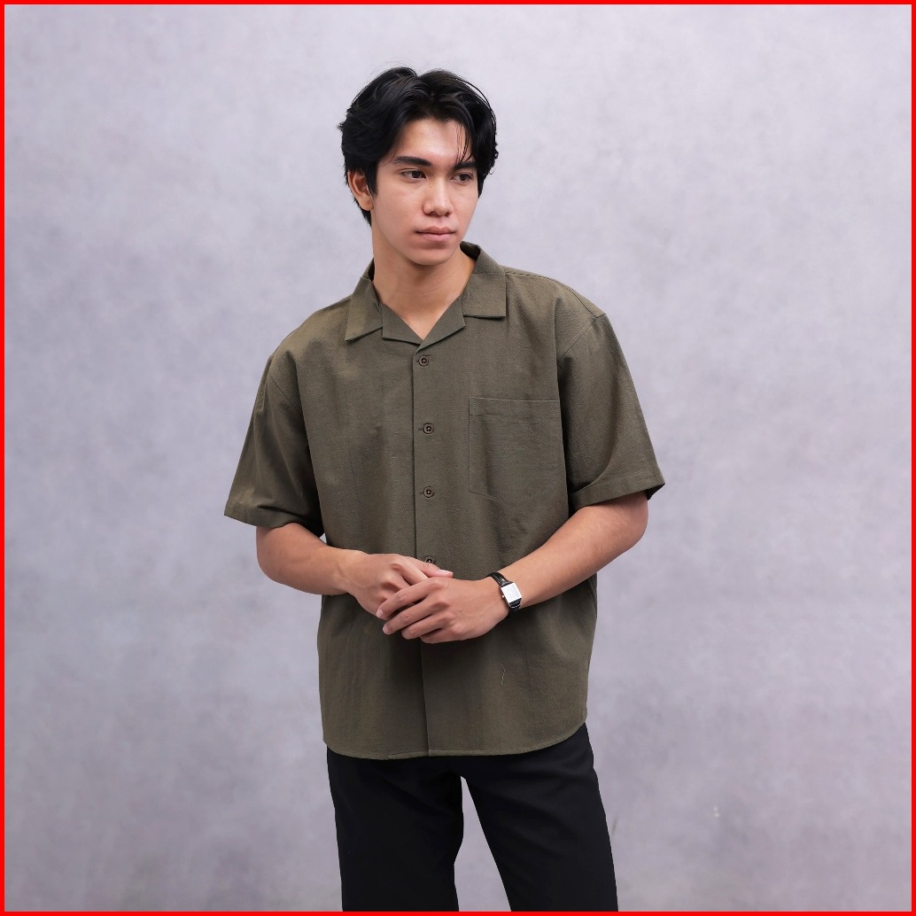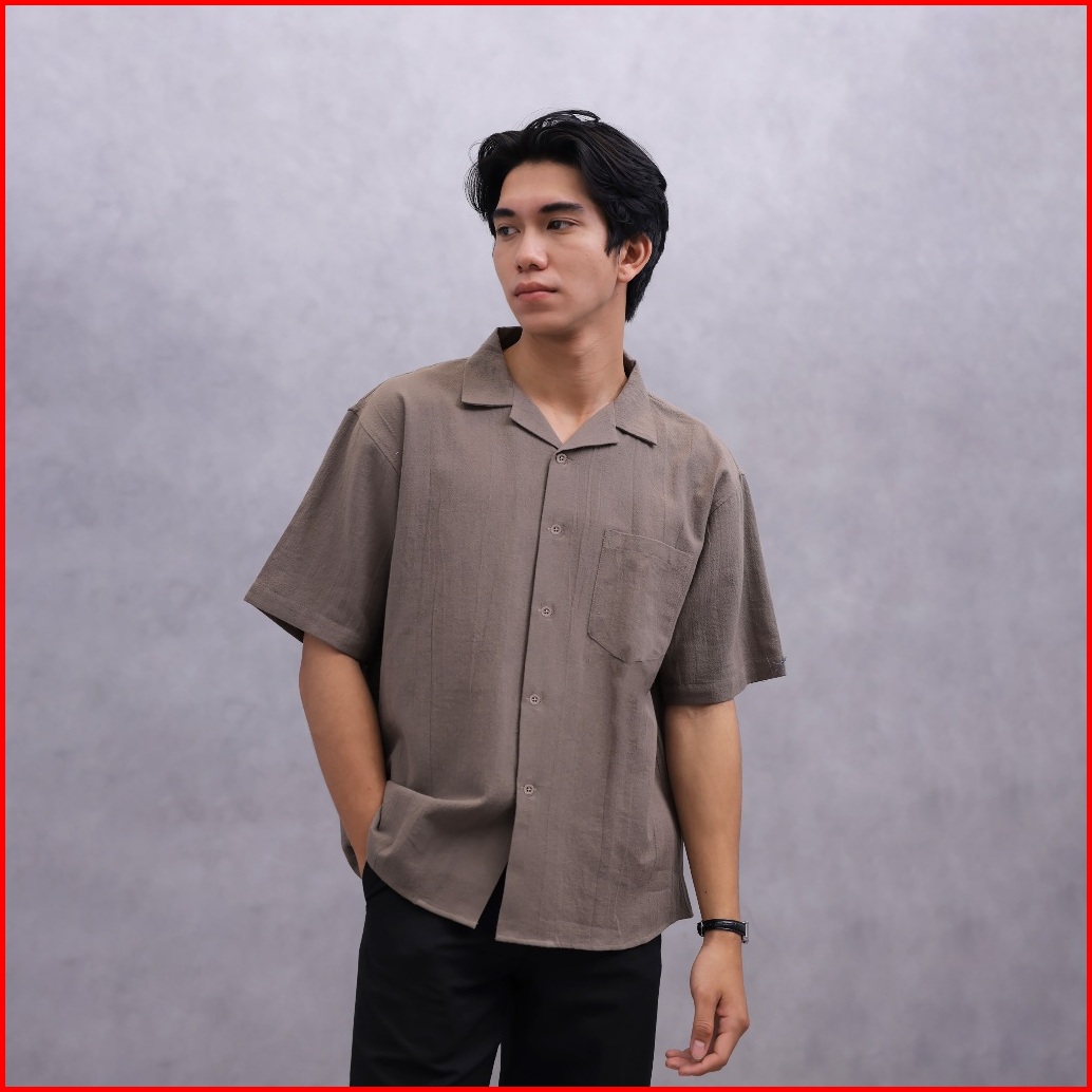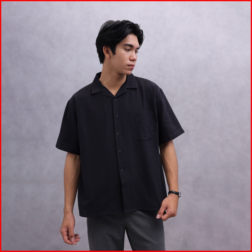 Wilmerstudios Kemeja Linen Oversize Pria Open Collar Lengan Pendek All Variant