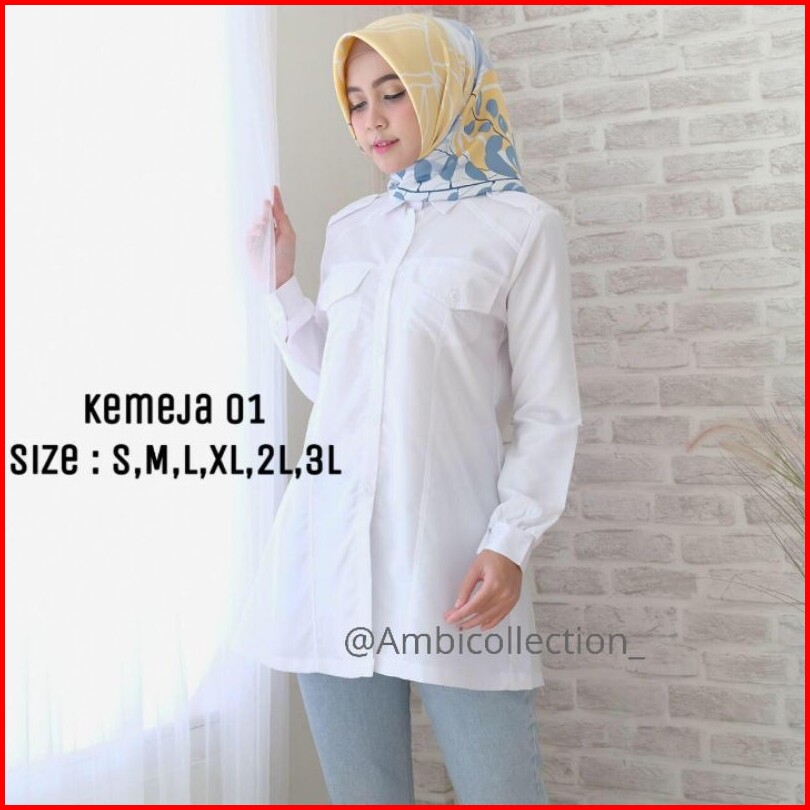 Blouse Atasan Baju Kemeja Pns 01 Putih Kerja Guru Lengan Panjang Kantoran Ukuran 3l