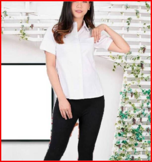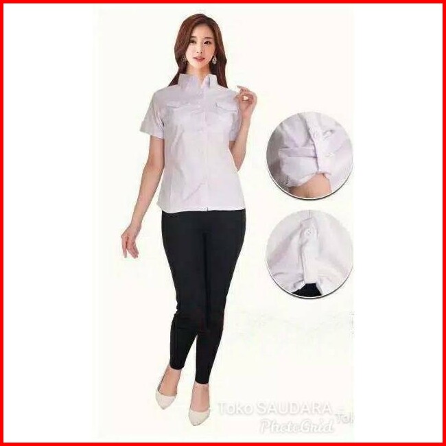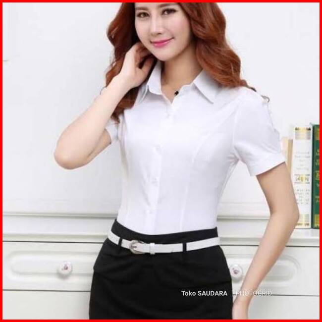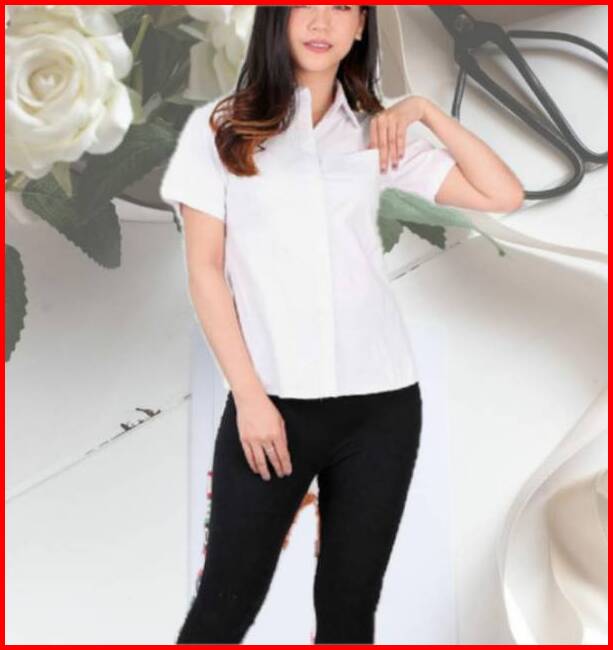 Kemeja Formal Wanita Putih Tangan Pendek Stretch