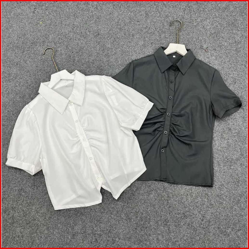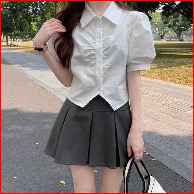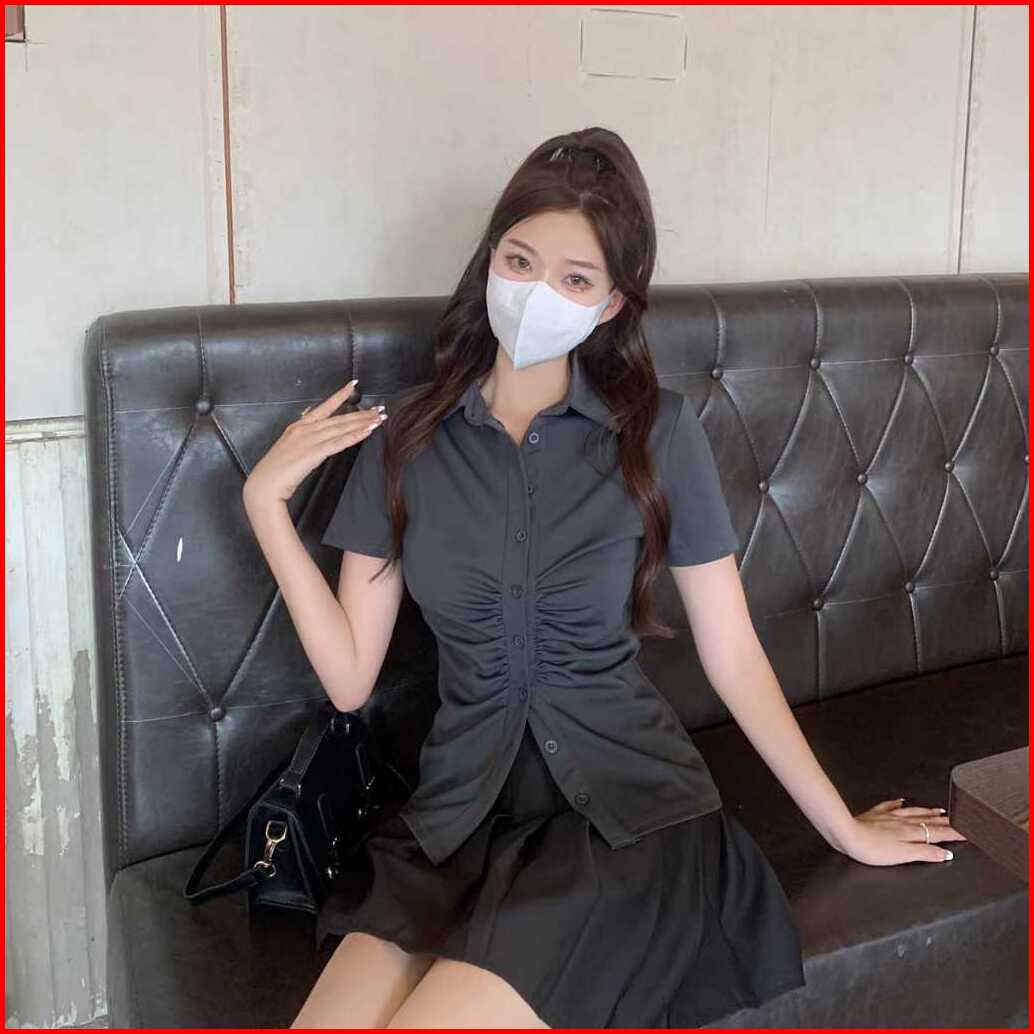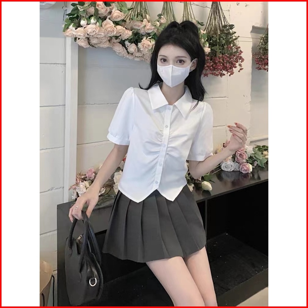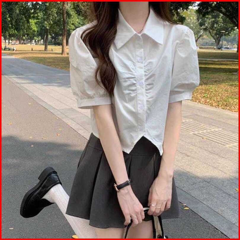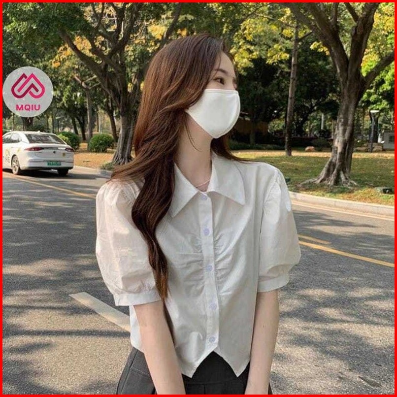Mqiu - Kemeja Atasan Wanita Lengan Pendek Casual Gaya Korea