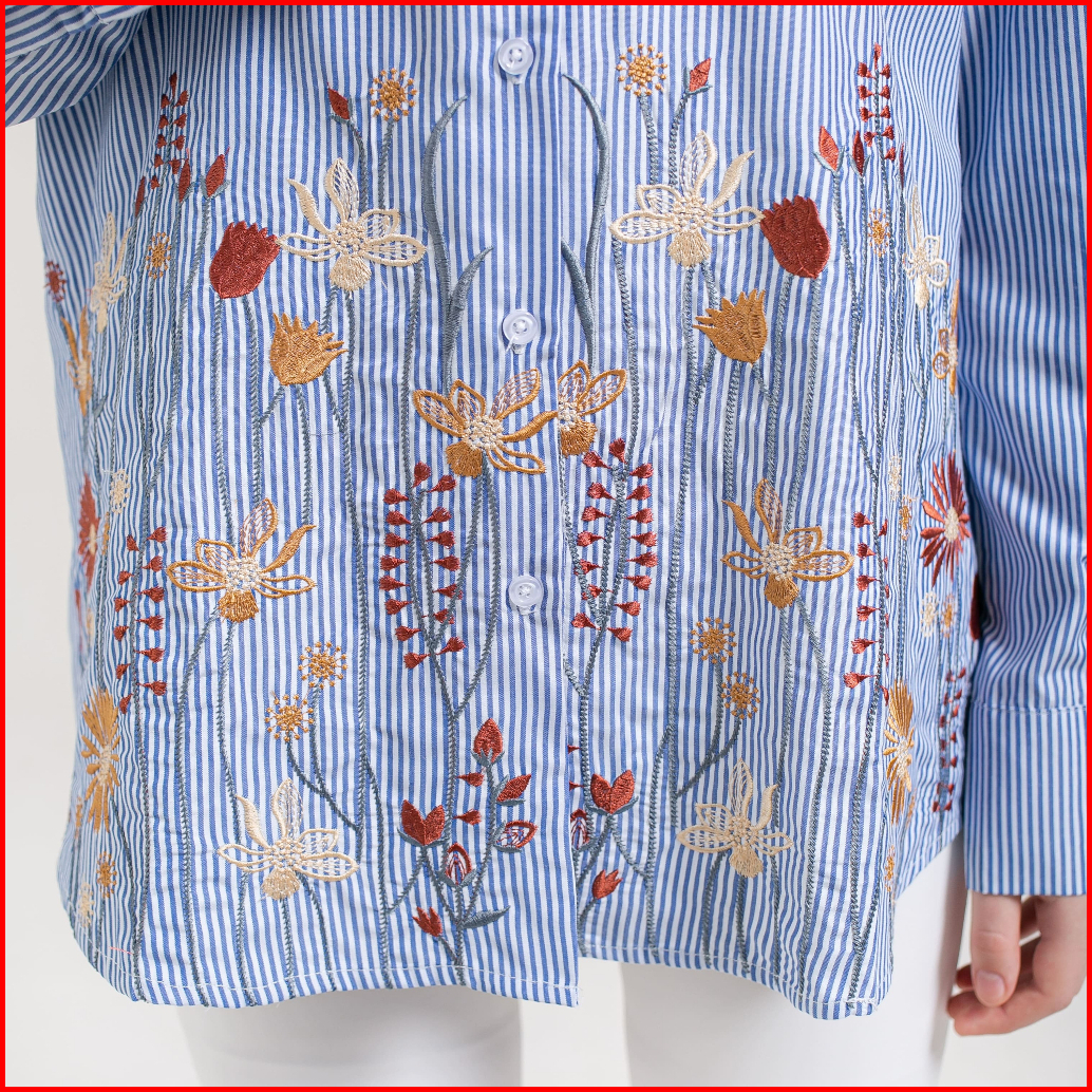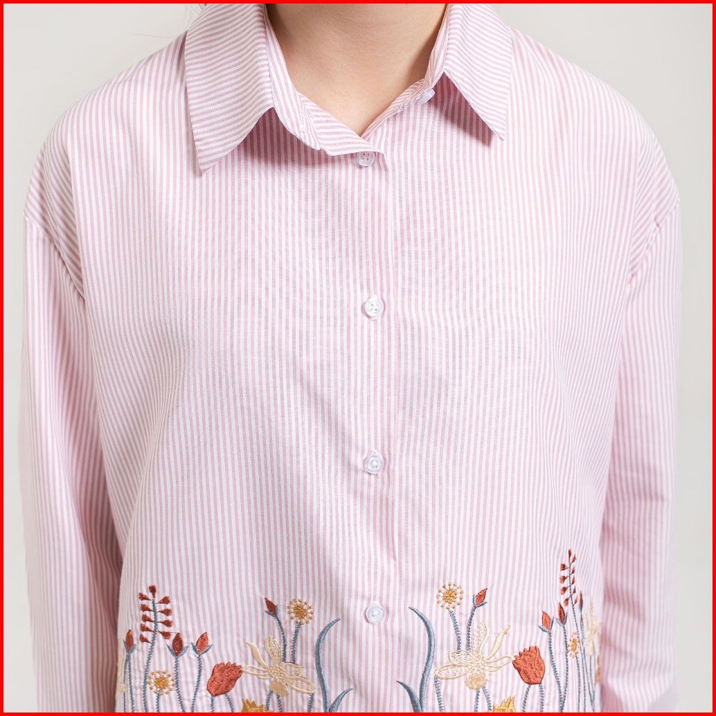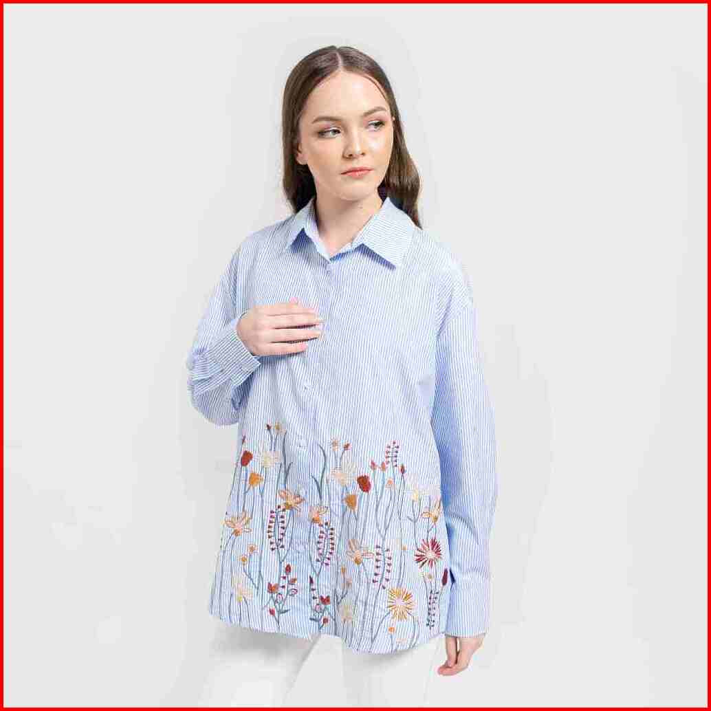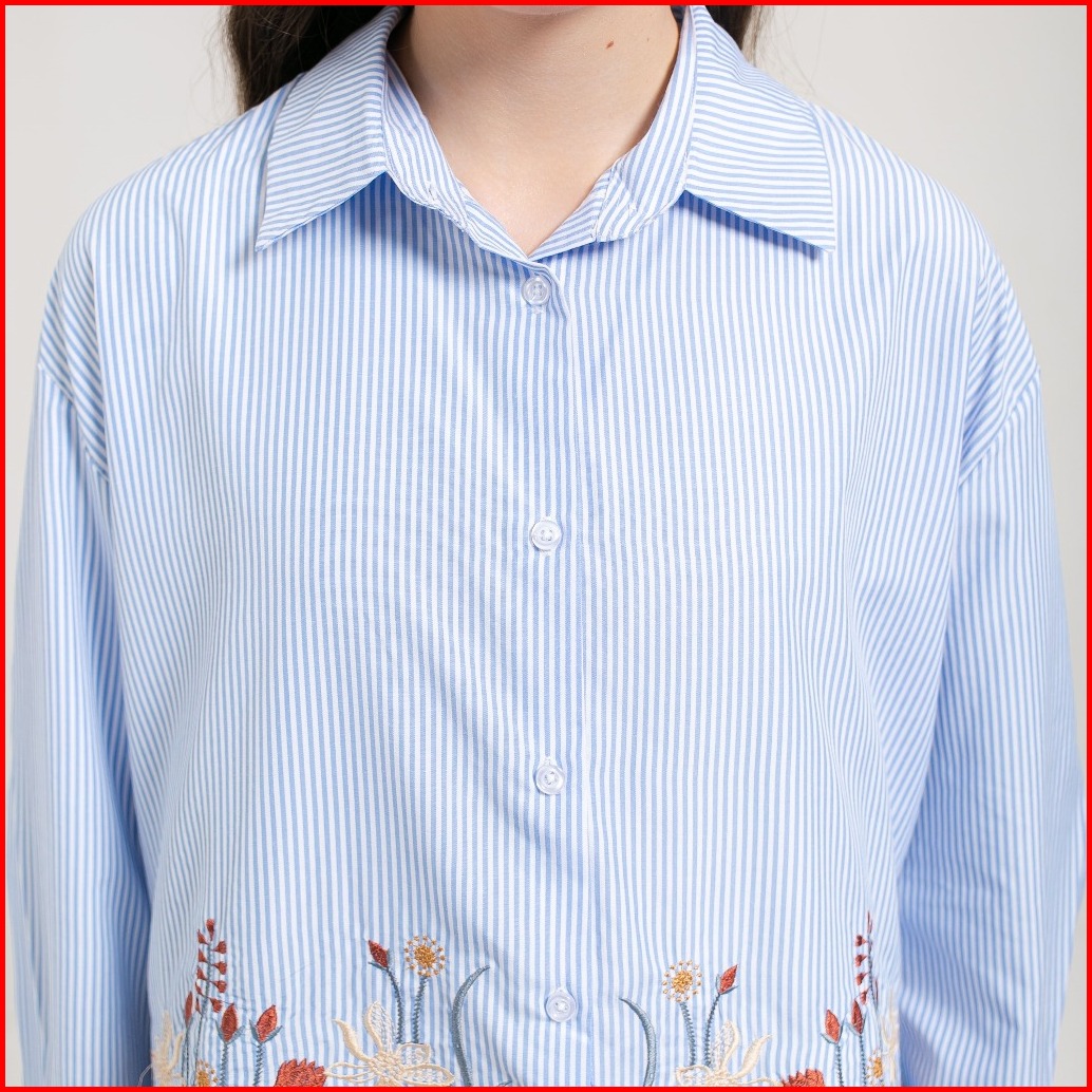 Slimah - Summer Striped Shirt Kemeja Atasan Bordir Wanita