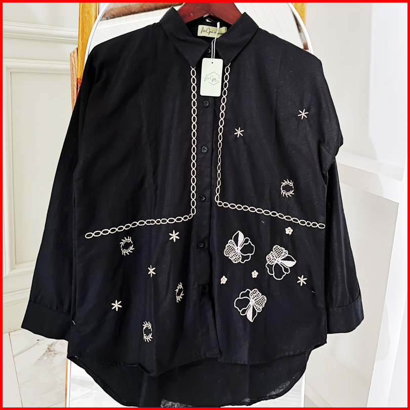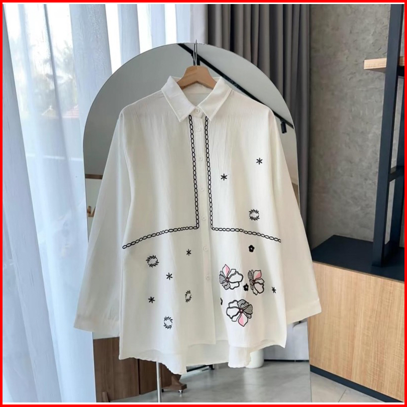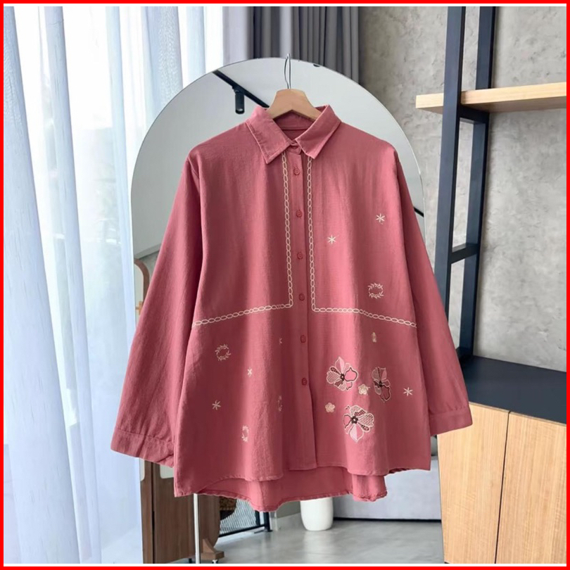 Alyssa Blouse Bordir - Kemeja Wanita Bordir Oversize Linen Premium - Kemeja Blouse Bordir Wanita Terbaru