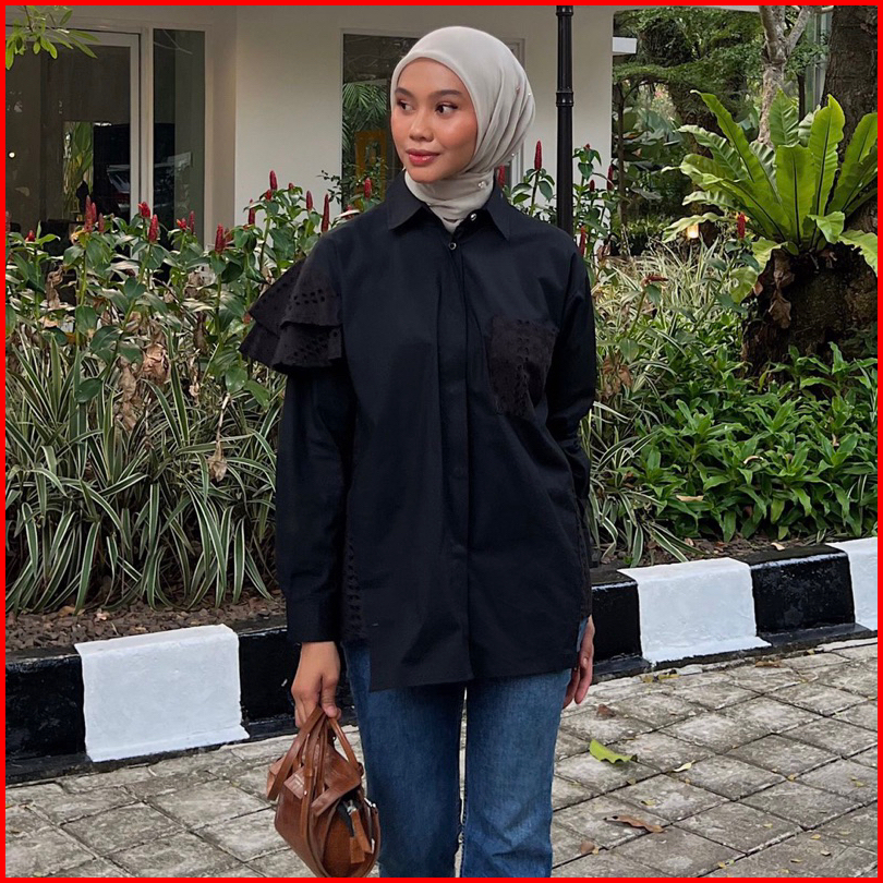 Atasan Kemeja Wanita Cotton Japan Bordir Eyelet Camila Shirt By Ateera.id