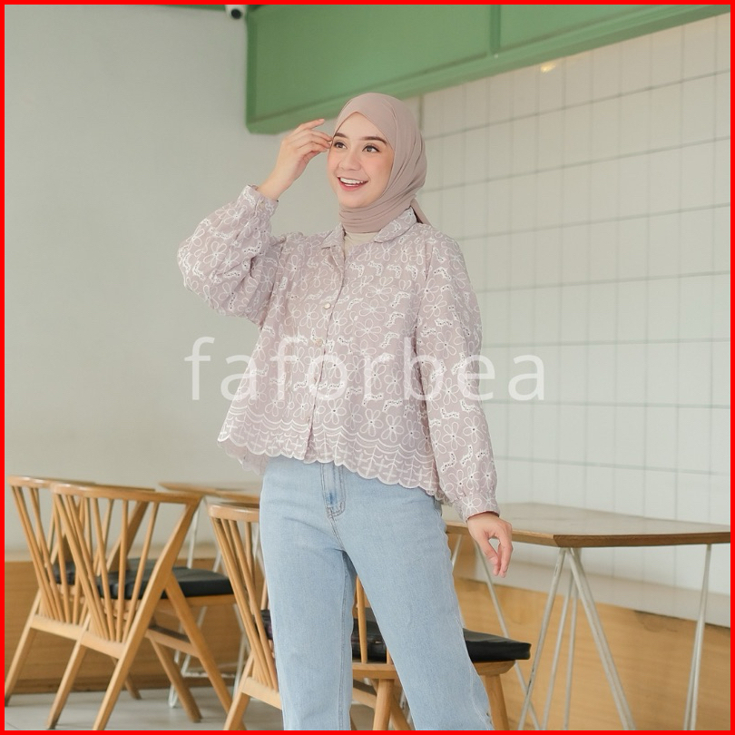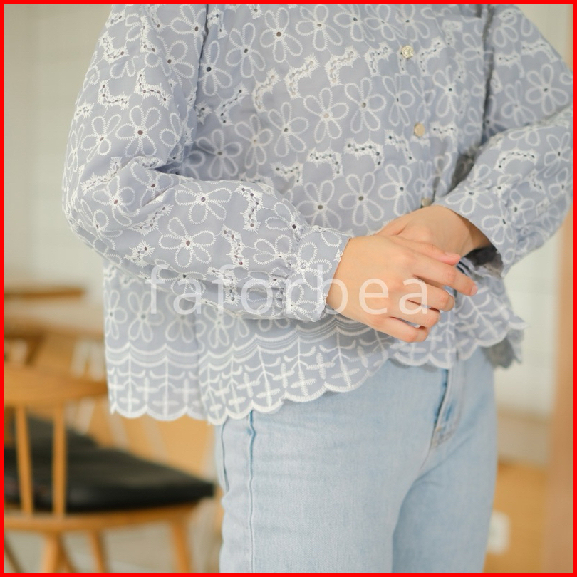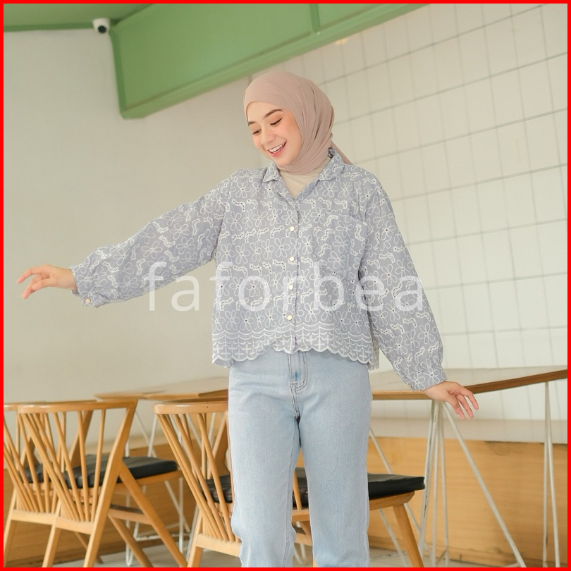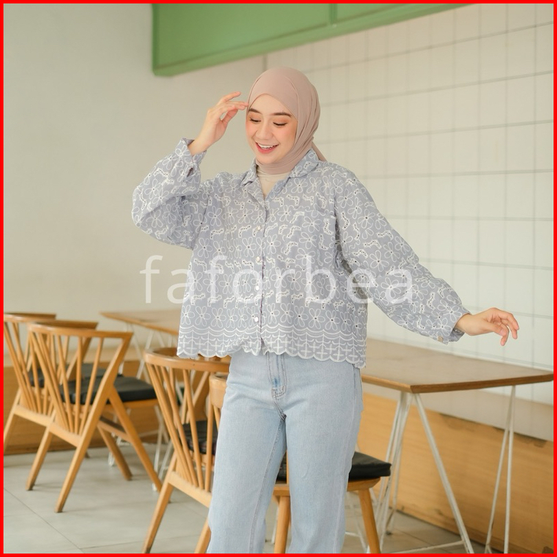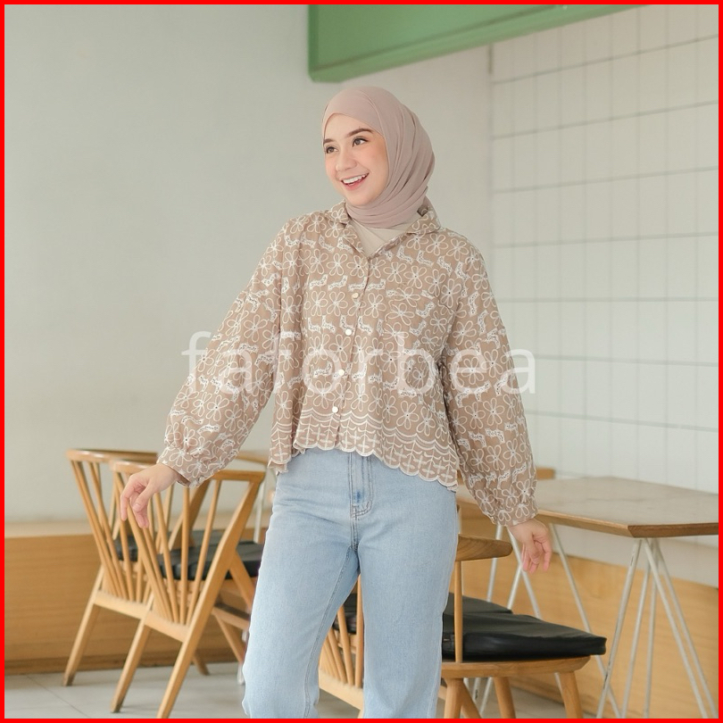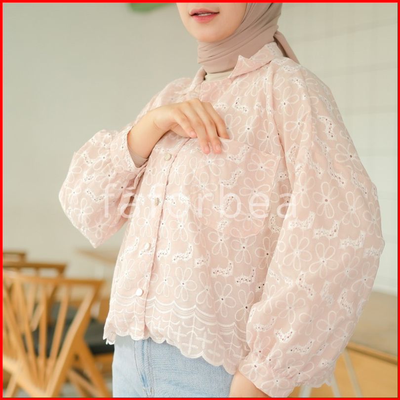 Faforbea Poppy Embroidery Semi Shirt - Cotton Bordir