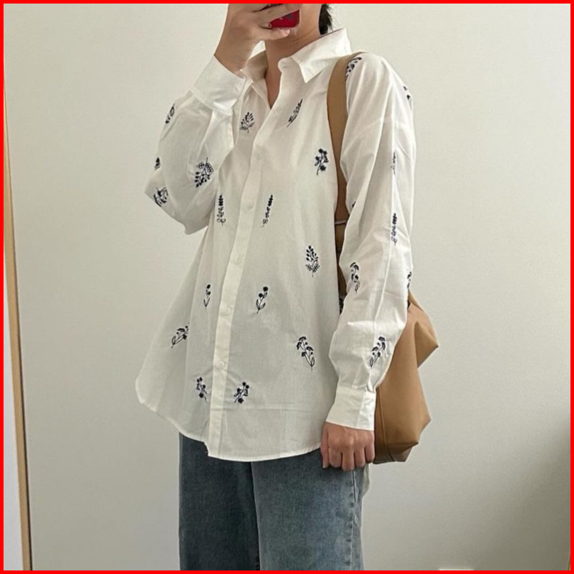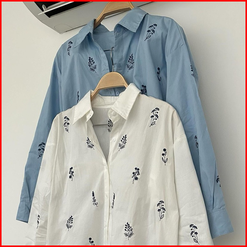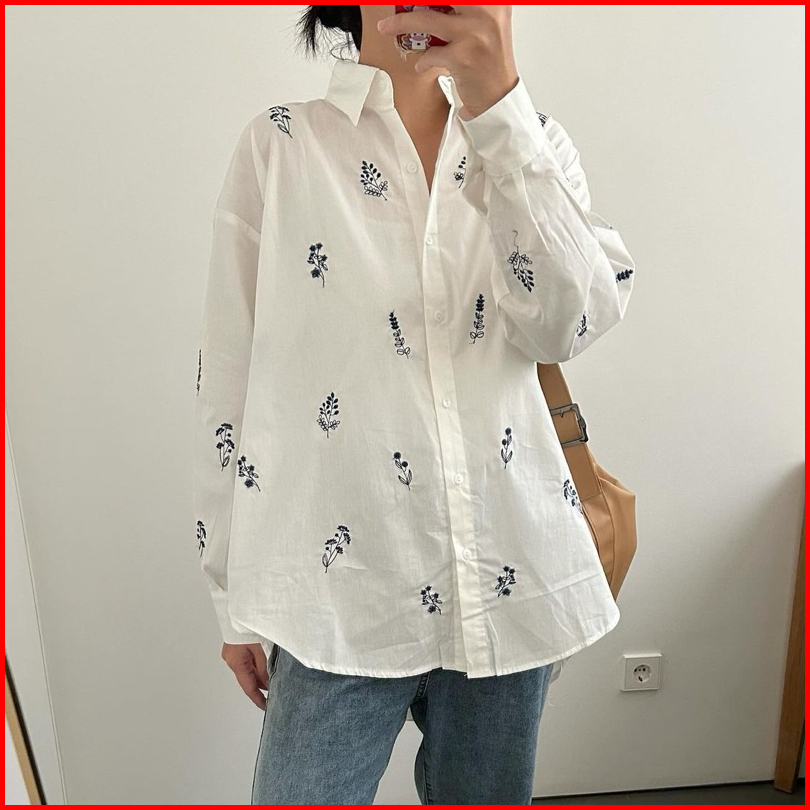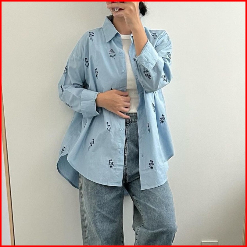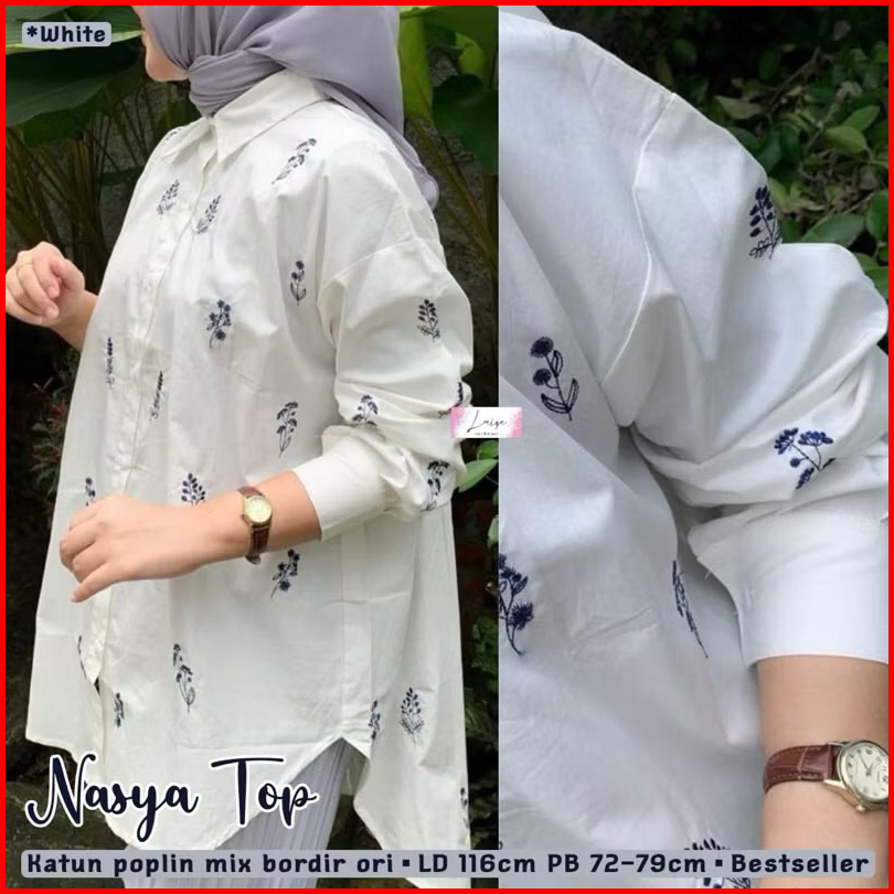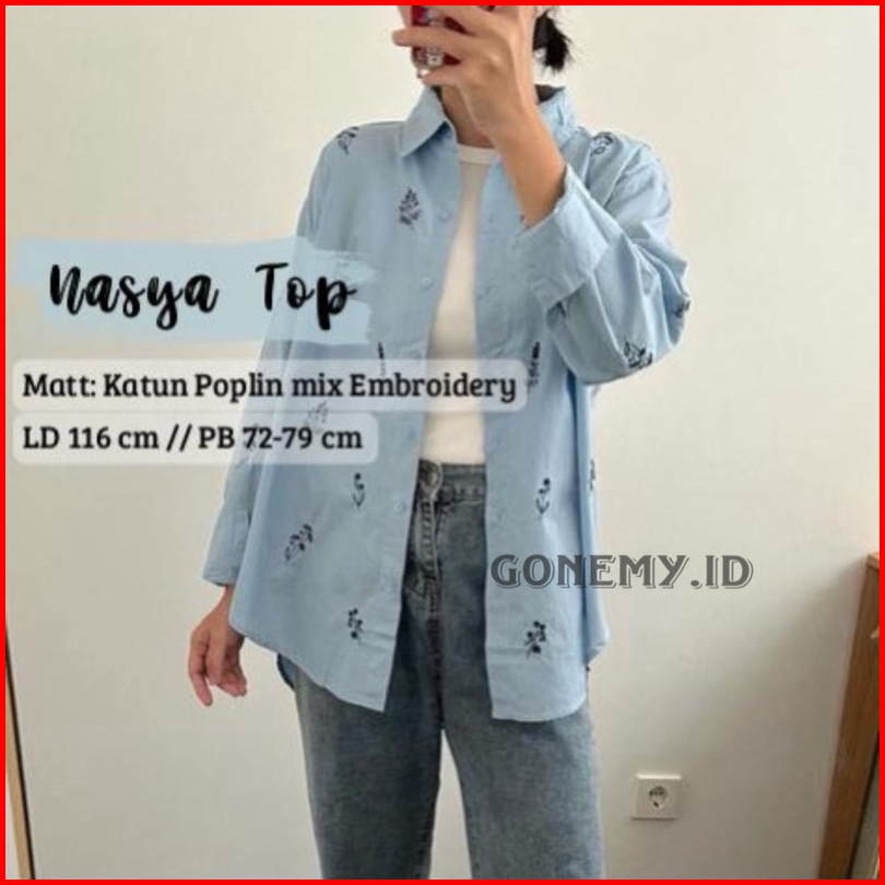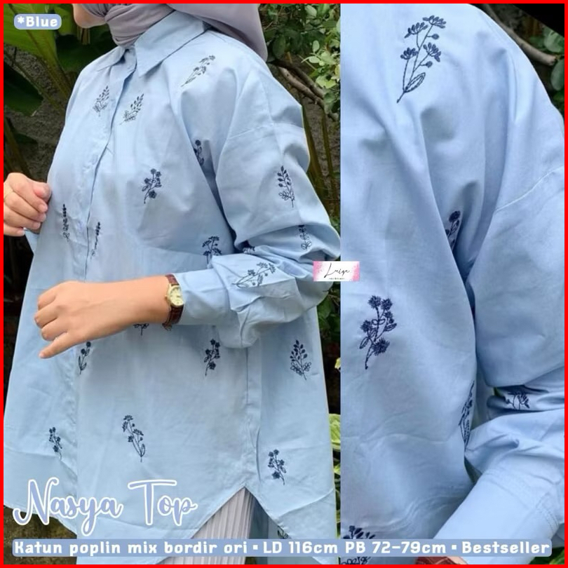 Nasya Top Kemeja Blouse Wanita Motif Bordir Bunga Premium Kekinian Terbaru Asli Cantik