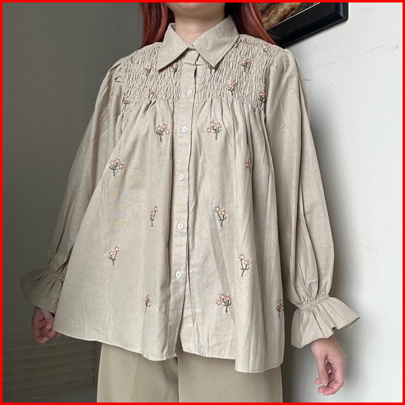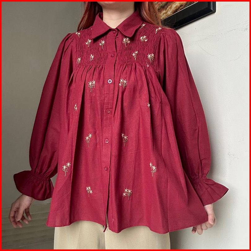 Zafira Top Atasan Blouse Kemeja Wanita Kerja Linen Bordir By Biel The Label