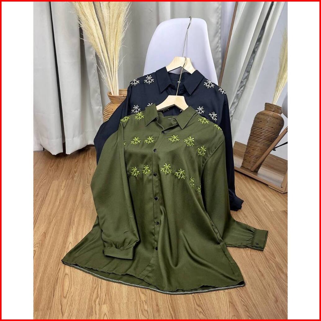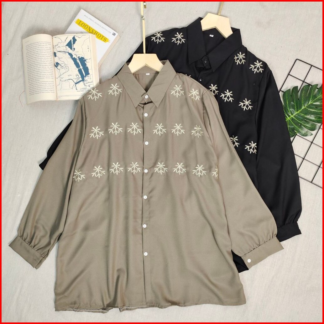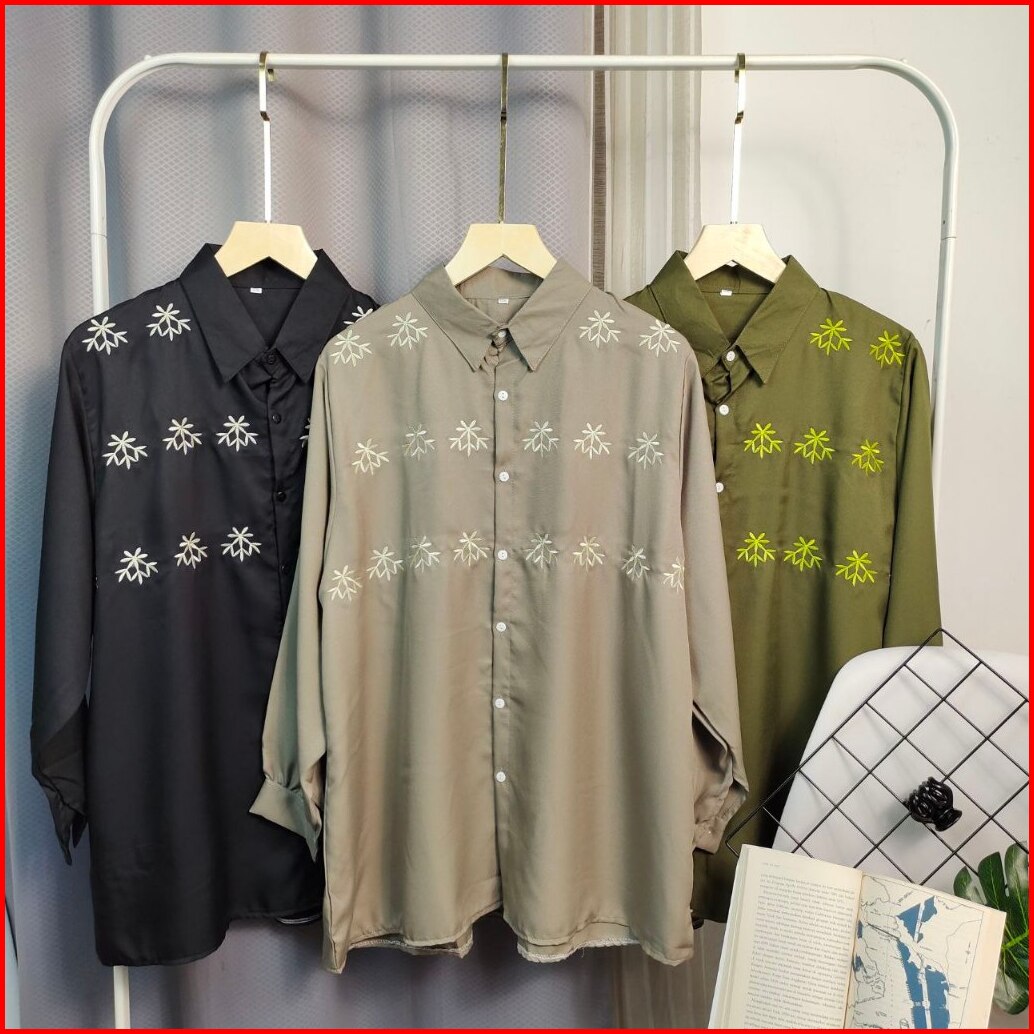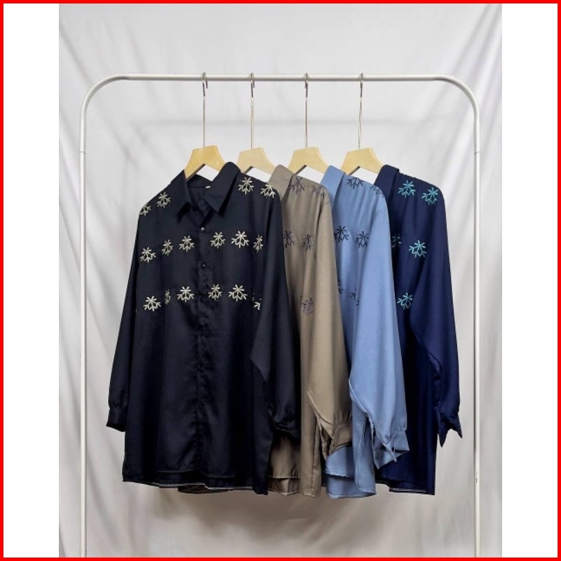 Fancy Shakila Bordir Super Jumbo Kemeja Bigsize Atasan Oversize Ld 120 130 140 150