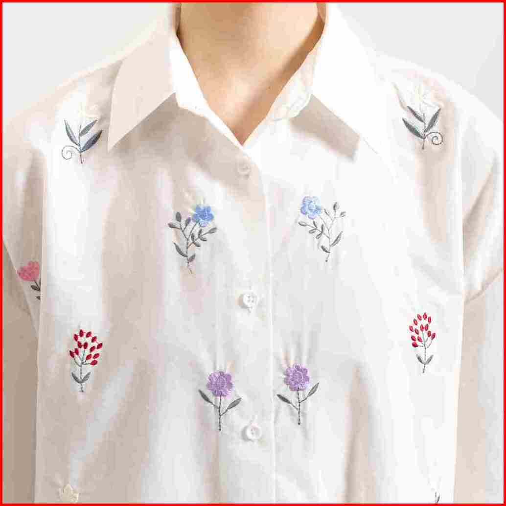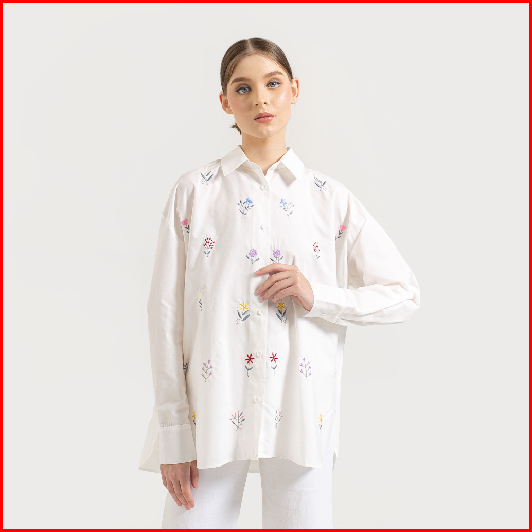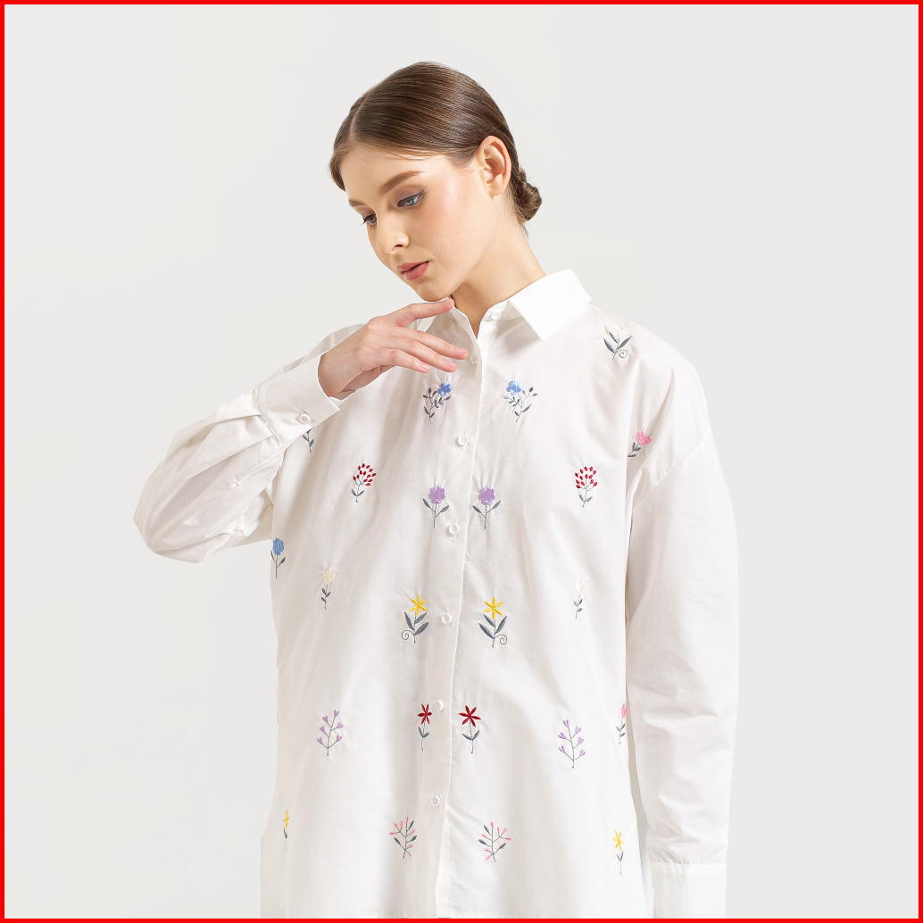 Slimah - Jardin Top Kemeja Oversized Bordir Wanita