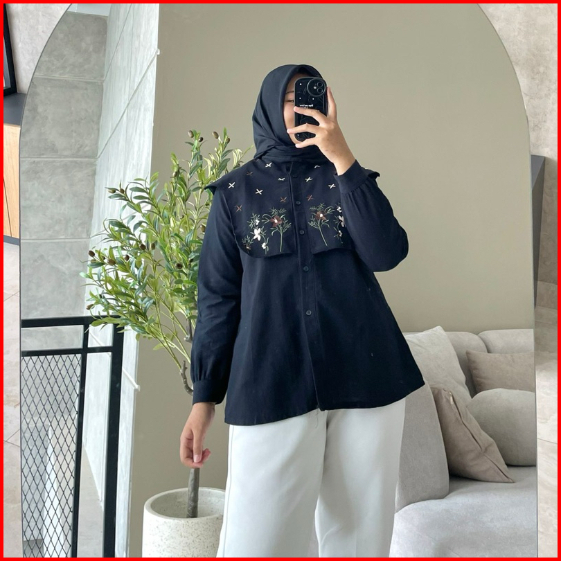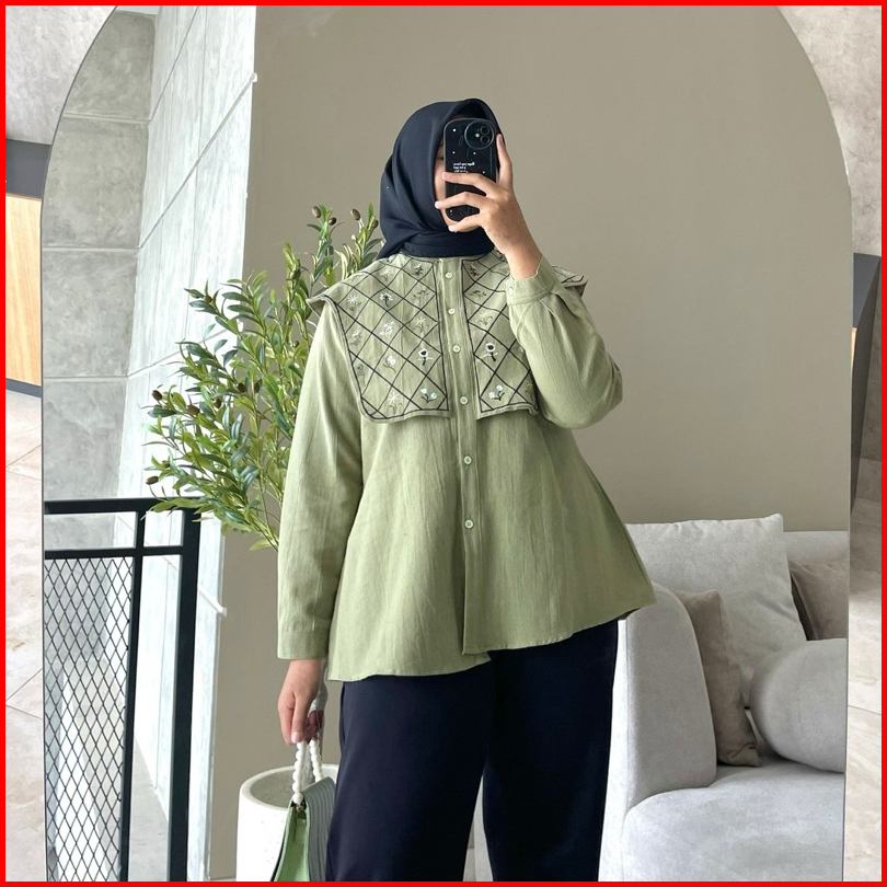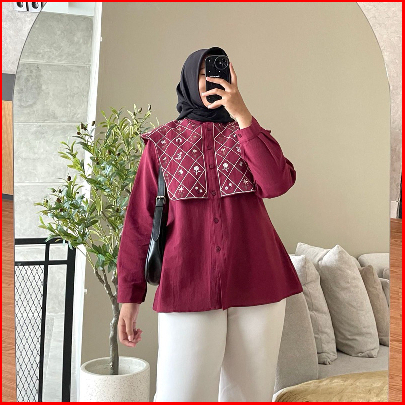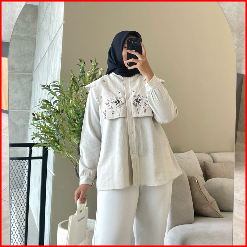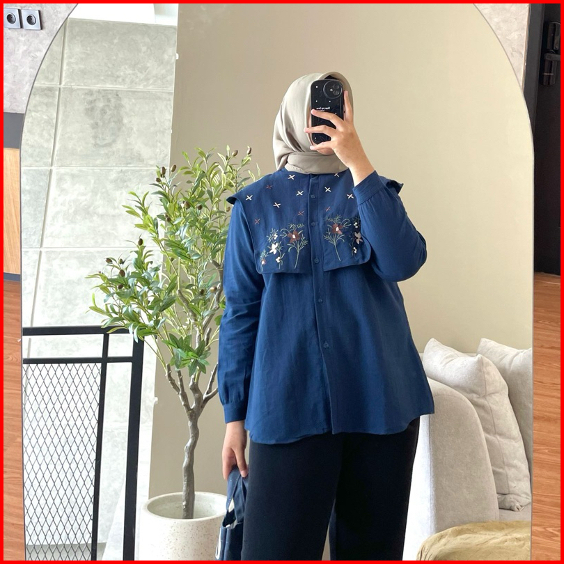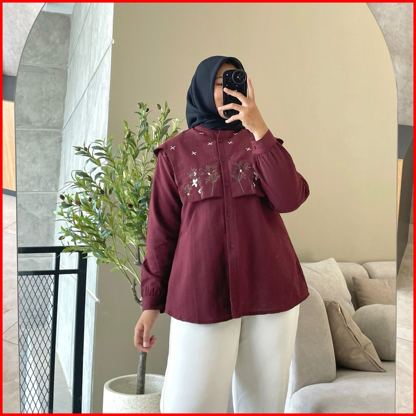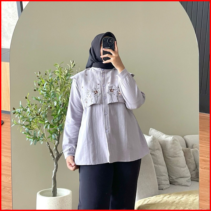 Hanako 391 Kemeja Vest Linen Bordir Atasan Vest Rompi Bordir
