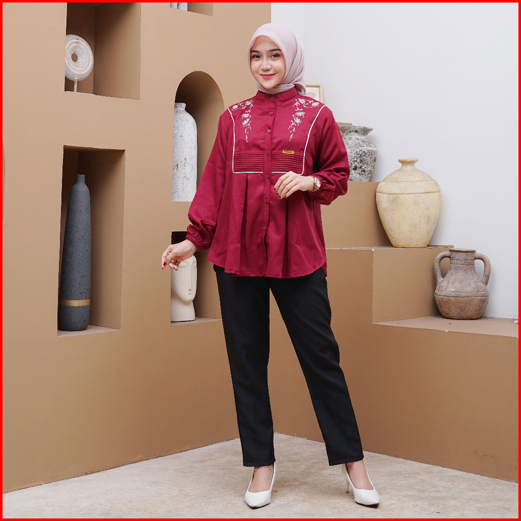 Blouse Bordir Arunika Shakila Baju Atasan Wanita Panjang Casual Nyaman