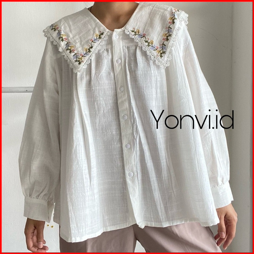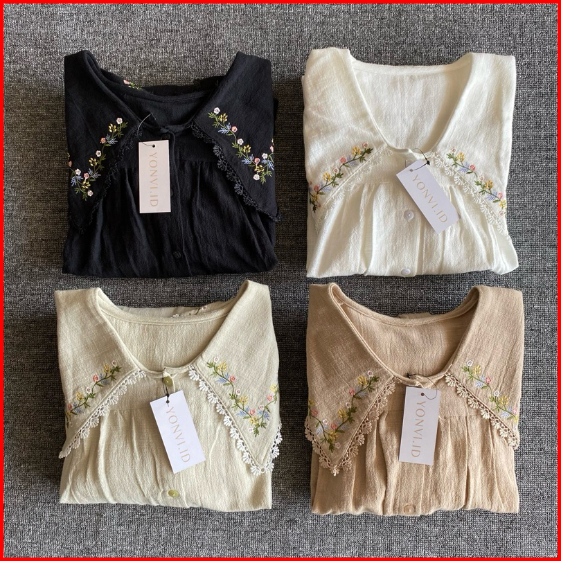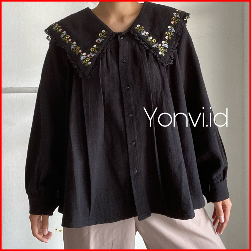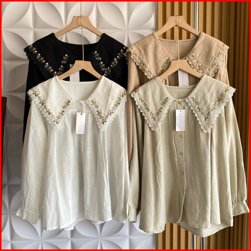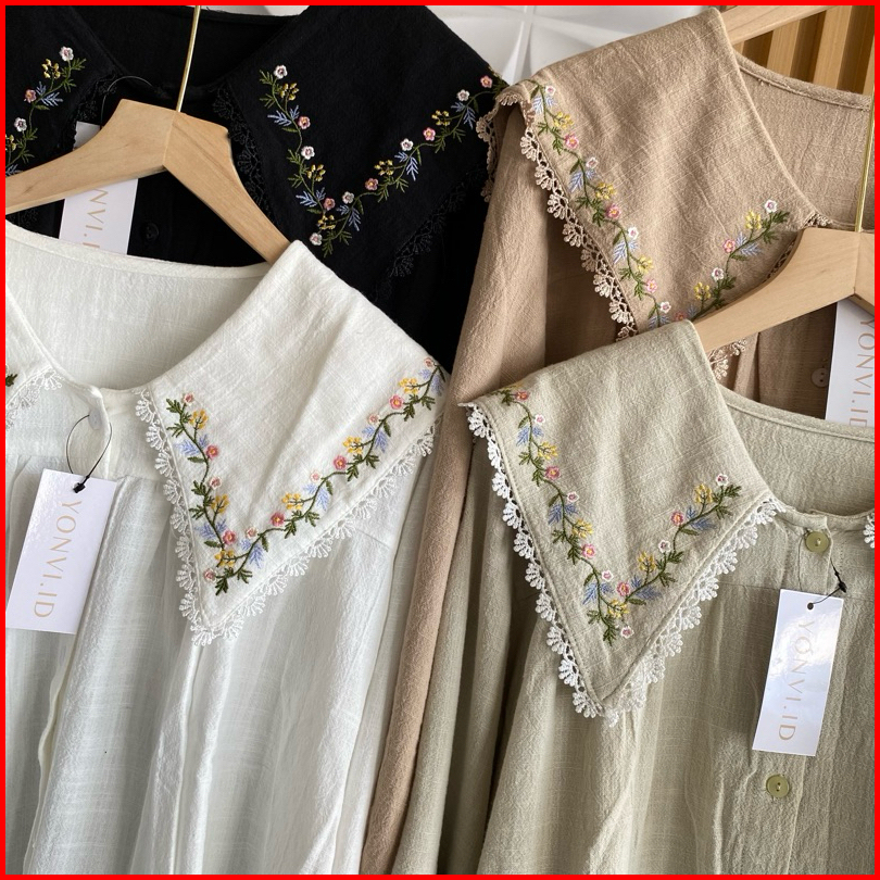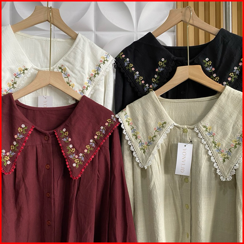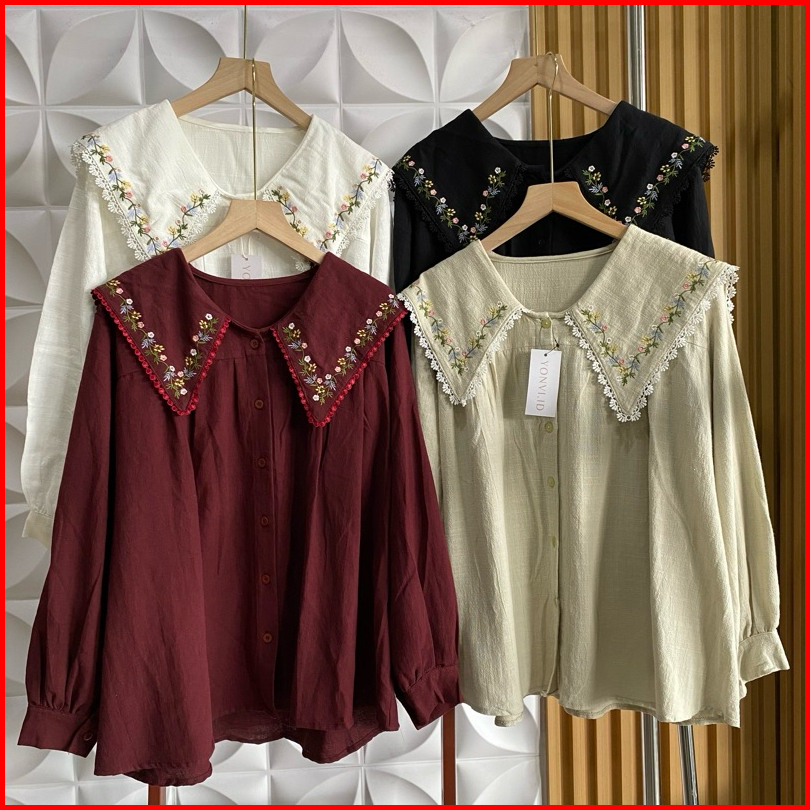 Carlina - Ld 118cm Pb 65cm - Atasan Kemeja Blouse Wanita Linen - Yonvi.id