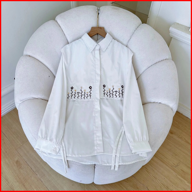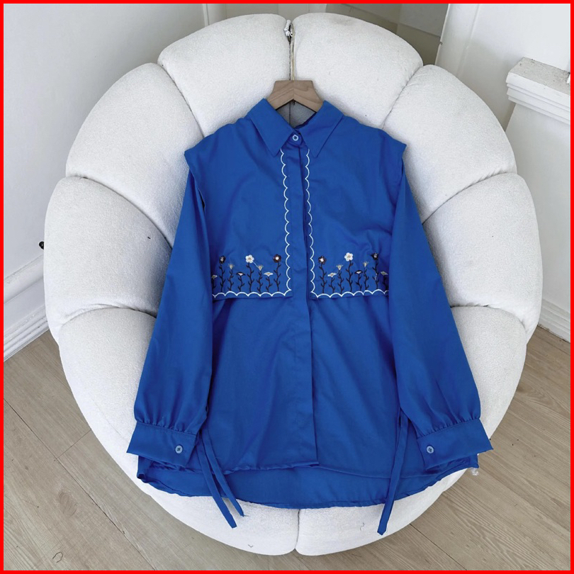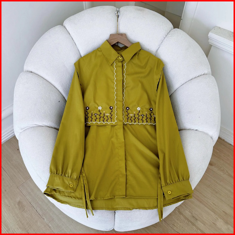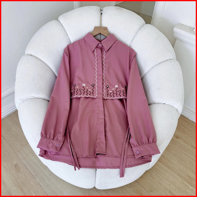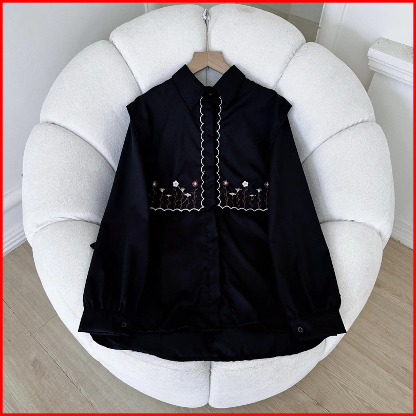 Menna Blouse Kemeja Wanita Motif Bordir Bahan Catton Toyobo Atasan Wanita Full Kancing